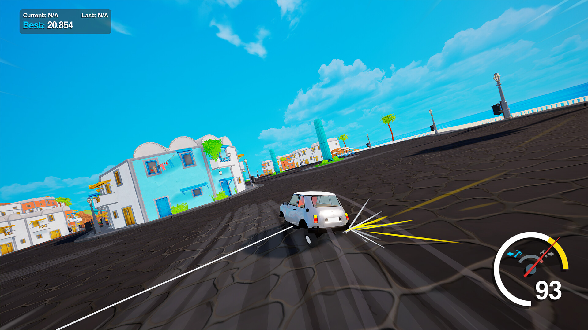 Every track has 3 time goals: Bronze, Silver, and Gold. Hitting them earns upgrade points to improve your car’s handling and speed.