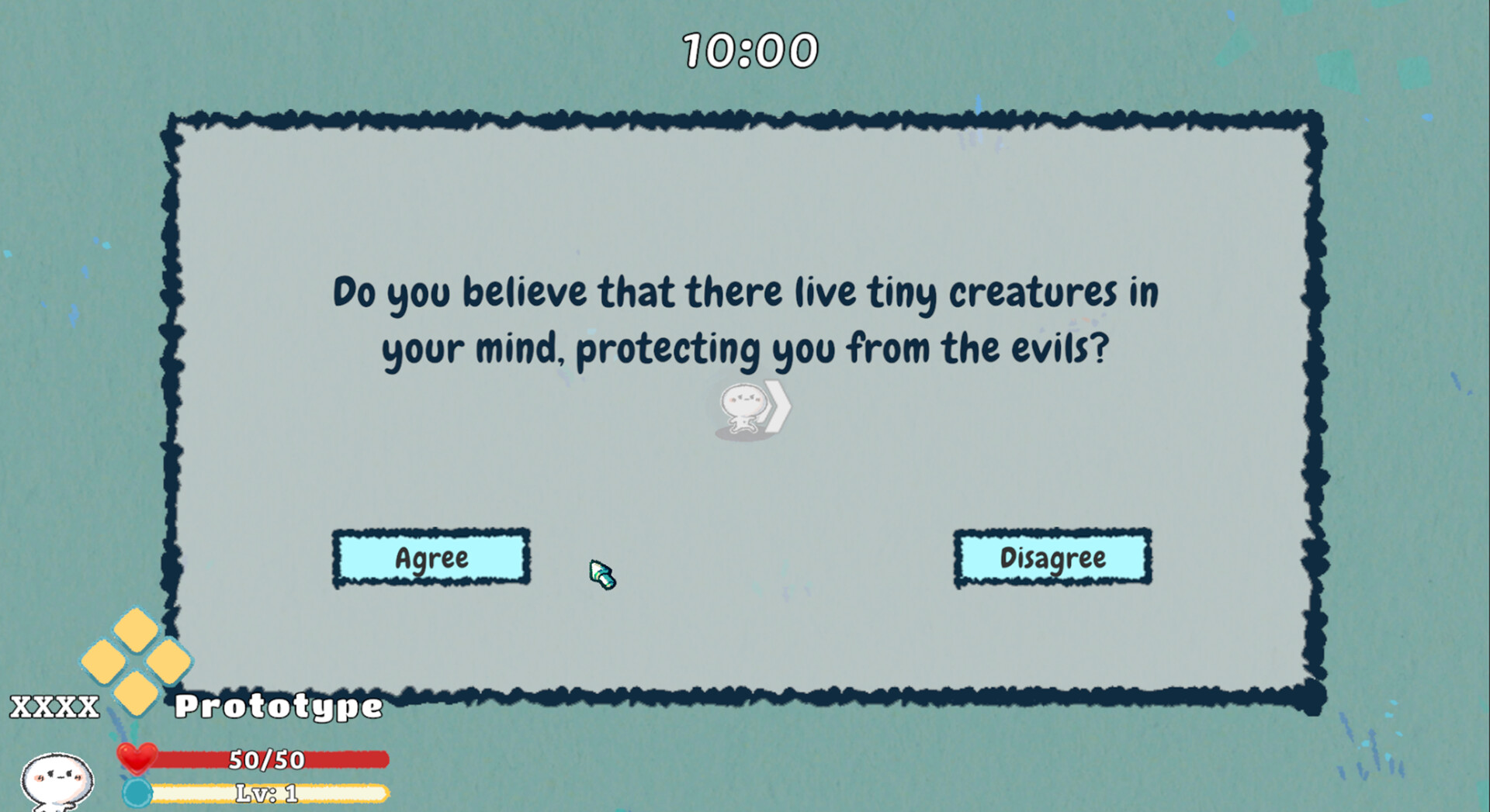 Inspired by MBTI, this is a fast-paced, top-down arena shooter roguelite where your inner world becomes the battleground. Harness the power of four elemental sprites to fend off the sinister forces lurking in your mind. No matter what your personalities are, you can conquer your darkest thoughts!
