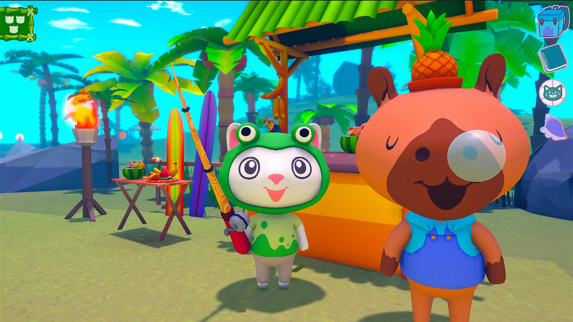 Welcome to the Cozy Beach demo, where you can fish on a beautiful tropical island and hang out with your feline friends!