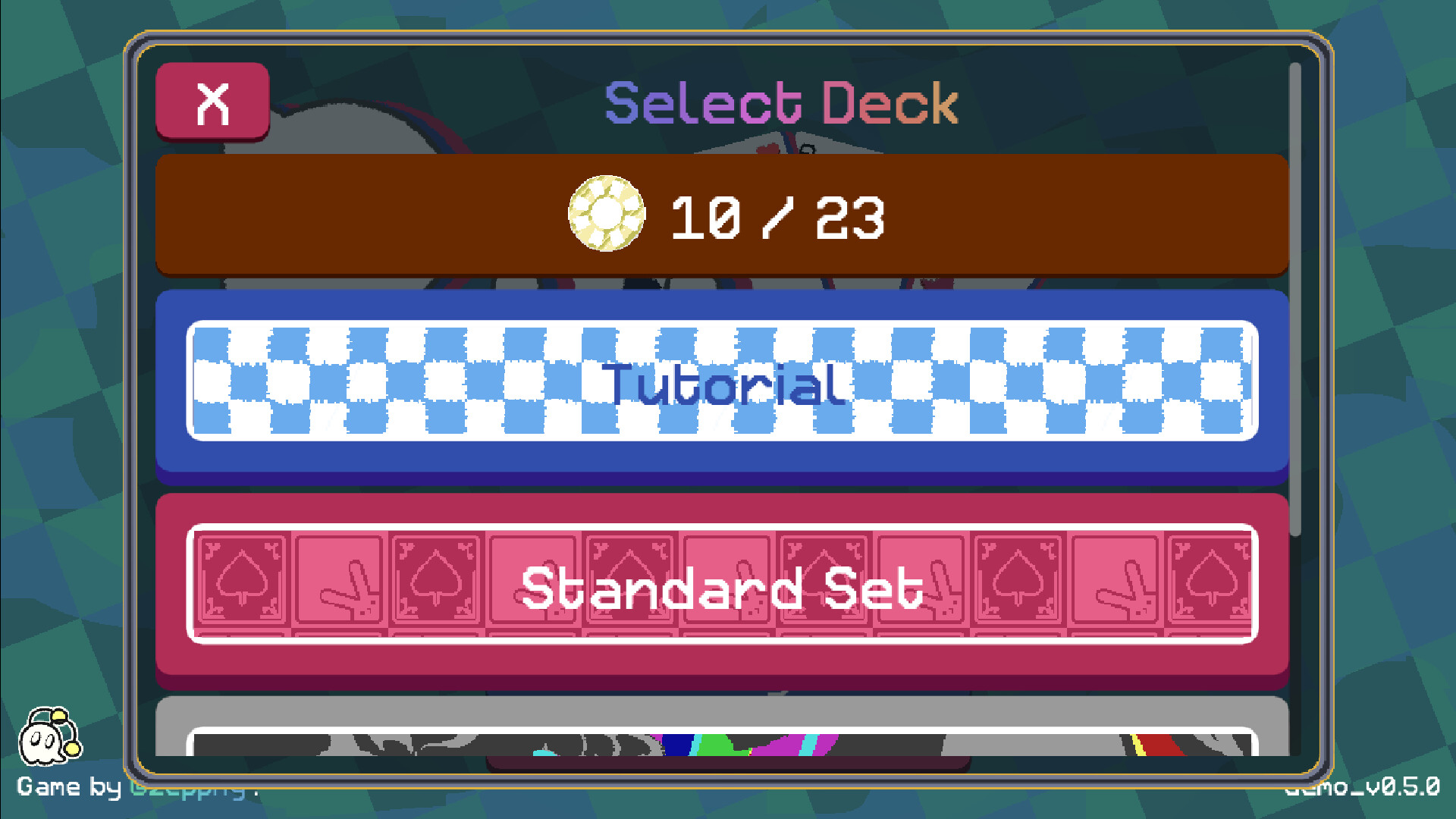Keep in mind the version of the game you are playing here is a demo version, which includes 8 decks with more in the full version. I'm currently cooking up a full version that you can wishlist now! The full version will be done soon™ October 21st 2025