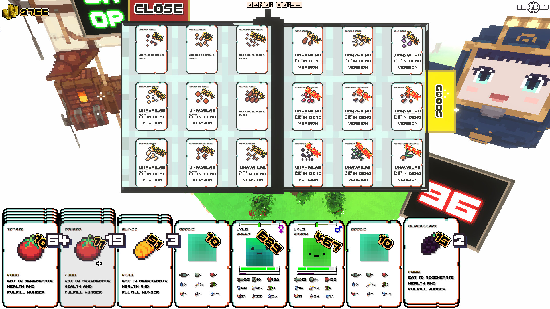 Sky Fields: Goober Gardens는 구버를 키우고, 교환하고, 전투하며, 교배할 수 있는 보xel 스타일의 배틀 펫 시뮬레이션 게임입니다. 구버를 위한 지속 가능한 생태계를 만들고, 상인들과 씨앗·식량·장비를 교환하며, 당신의 정원을 침입자로부터 지켜내세요!
