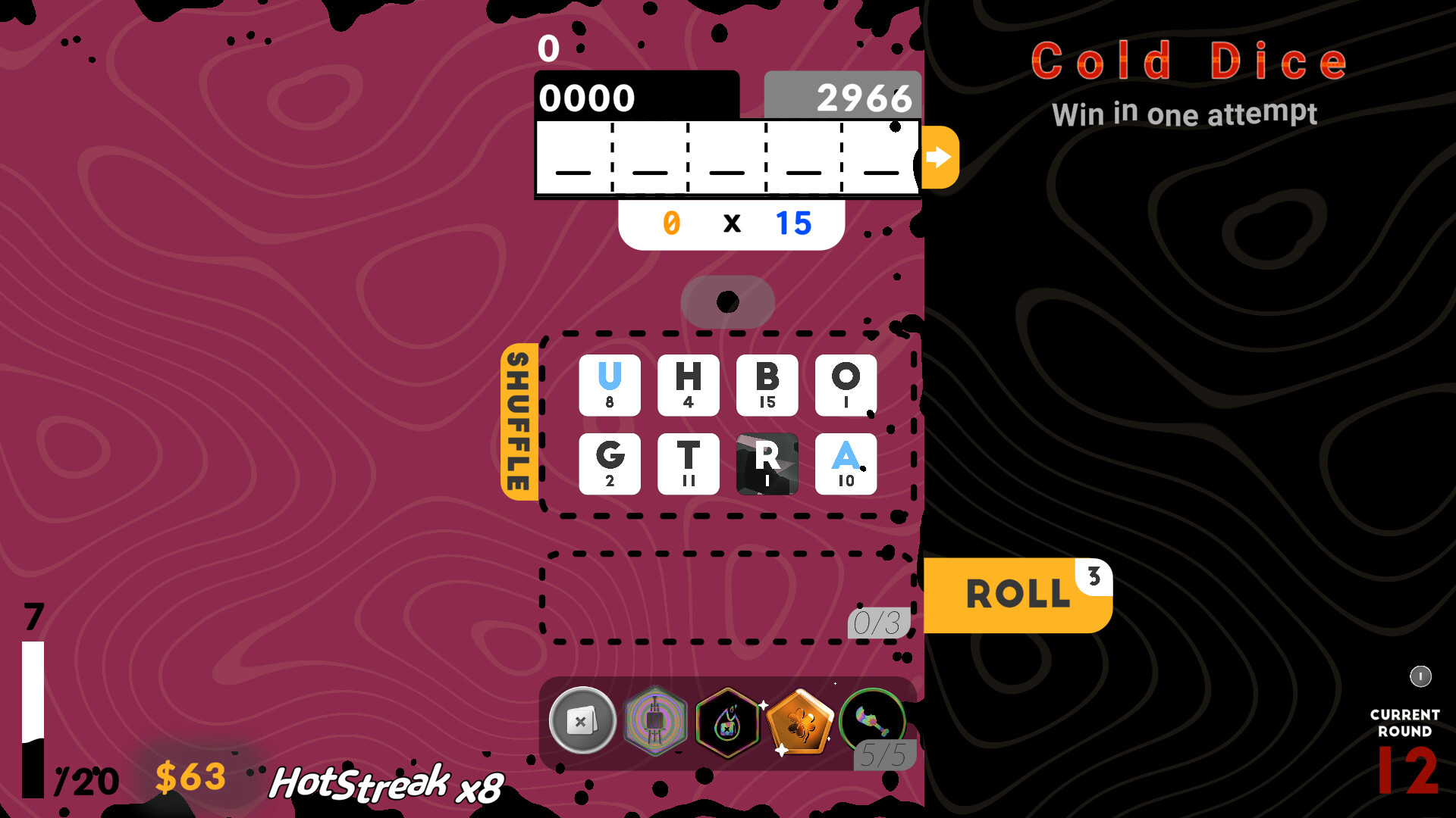 In this demo, you’ll play through 50 rounds of strategic spelling and dice manipulation. Roll letter dice, lock and reroll to build five-letter words and rack up points. Experiment with a selection of sample badges that twist the rules and unlock new strategies with each run.