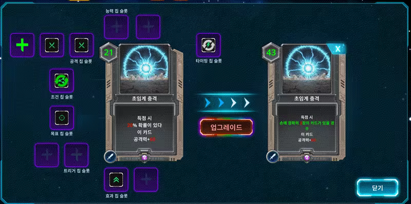 우주 정거장에서 카드를 구매하고 장비 및 룬을 얻거나 카드를 분해하고 업그레이드할 수 있습니다!