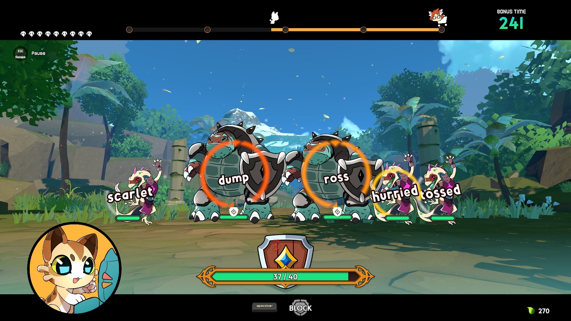 Time your blocks! Fight different kinds of enemies, each with their own attack patterns.