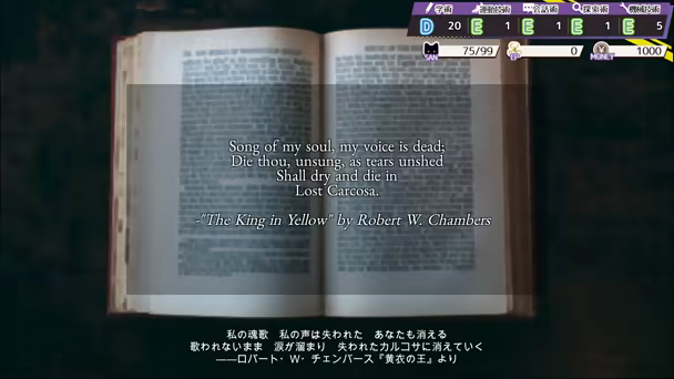 크툴루 신화의 수수께끼에 다가가는 TRPG풍 카드 게임 어드벤처. 카드 게임으로 싸우고, 사람들과의 교류로 기능을 성장시키며, 탐색으로 정보나 카드를 얻으면서, 카드 게임 『Erase』에 숨겨진 비밀을 밝혀내어 신화 사건을 해결하십시오.