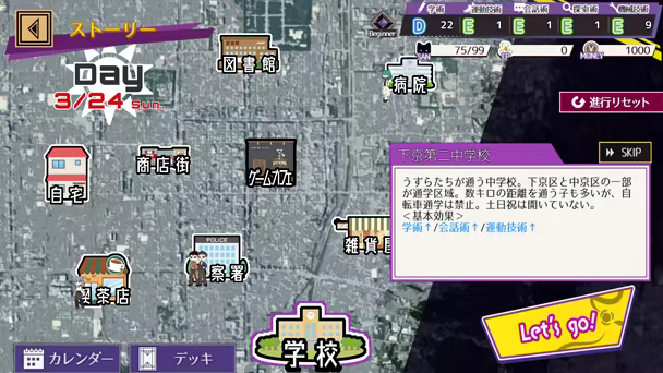 일상 속에서 다른 캐릭터와 교류하고 배워 나가는 것으로, 주인공이 가진 기능의 성공률이 올라갑니다. 막상 위험한 장소를 탐색하게 되었을 때 도움이 되도록 다양한 능력을 키워 둡시다.