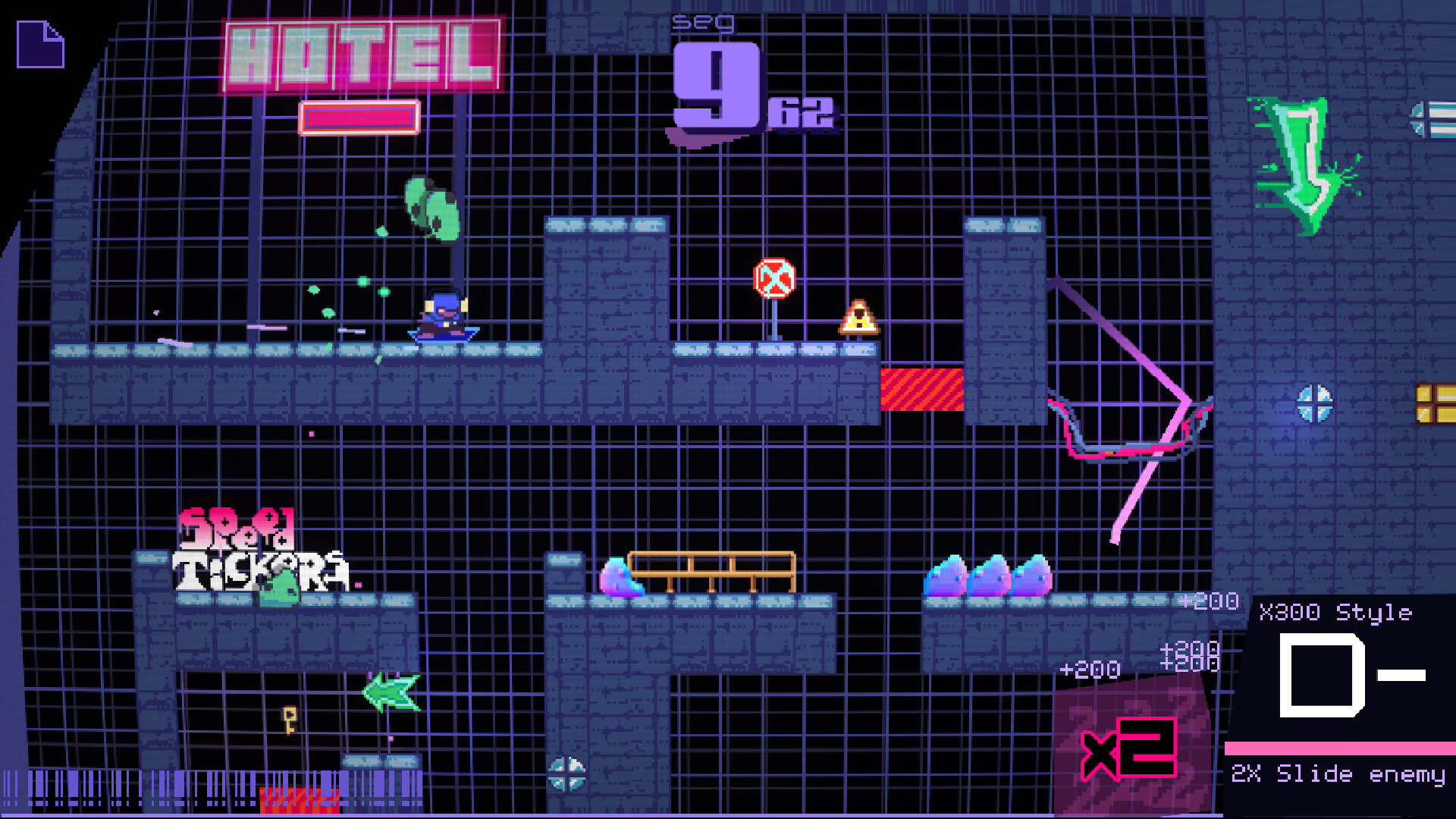 Push your reflexes to the limit across 90+ handcrafted levels set in a Cyberpunk world, brought to life in a slick neo-futuristic pixel art style. Compete against the world in the global Speedtest competition.