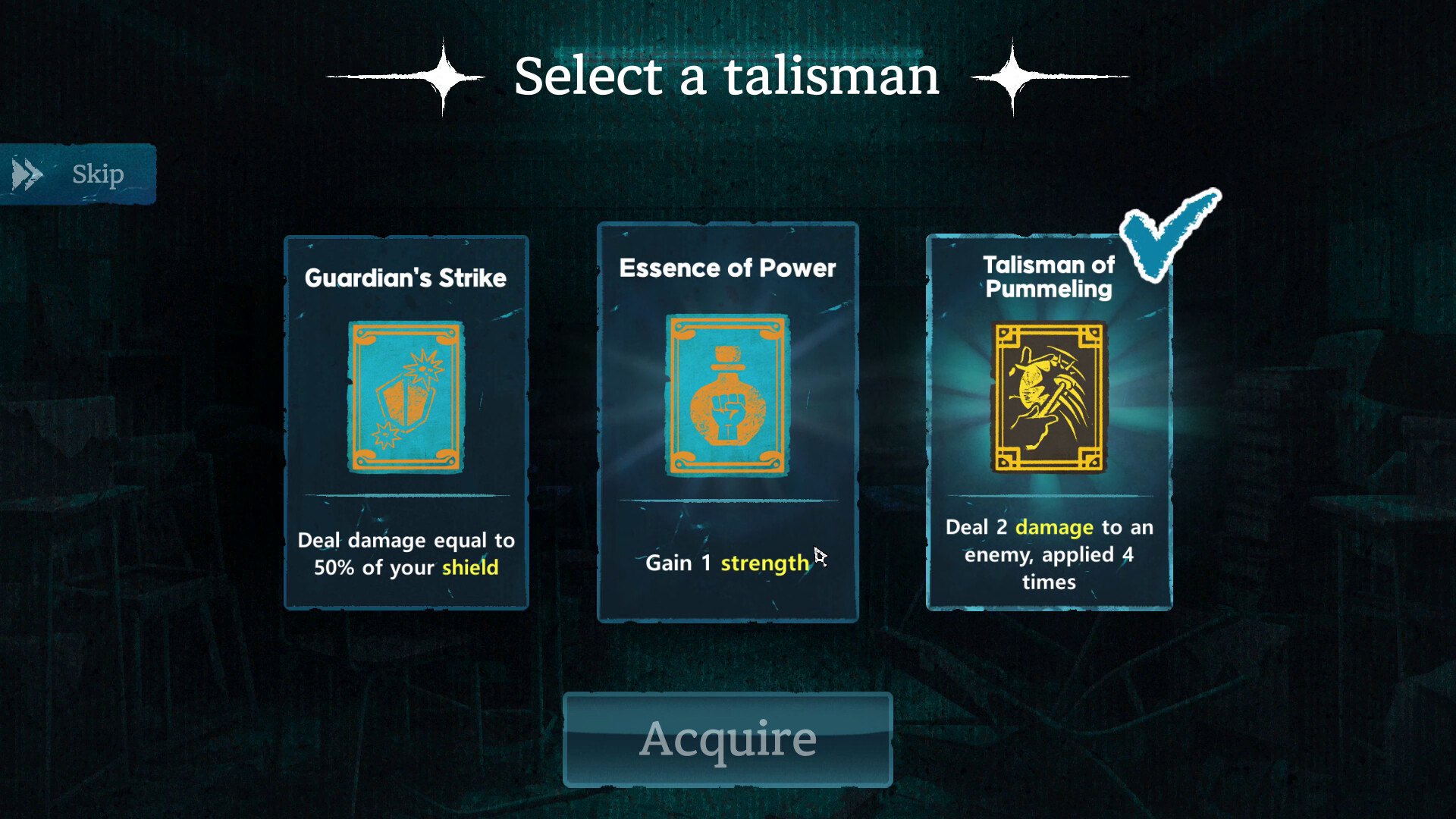 전투를 클리어할 때마다 금단의 부적이 보상으로 주어집니다. 획득한 부적들과 유물들을 조합해 저주받은 덱을 완성해보세요. 매번 달라지는 학교 속에서 당신의 선택이 곧 생존을 좌우합니다.