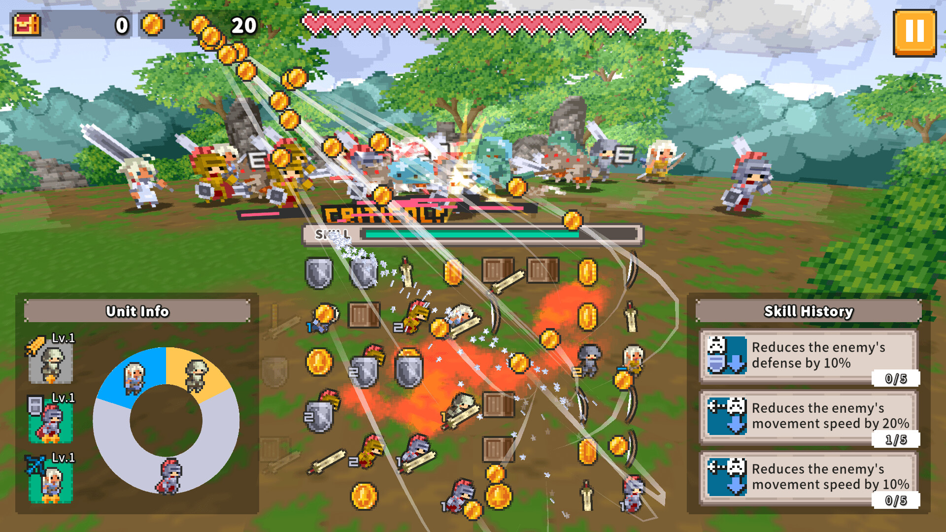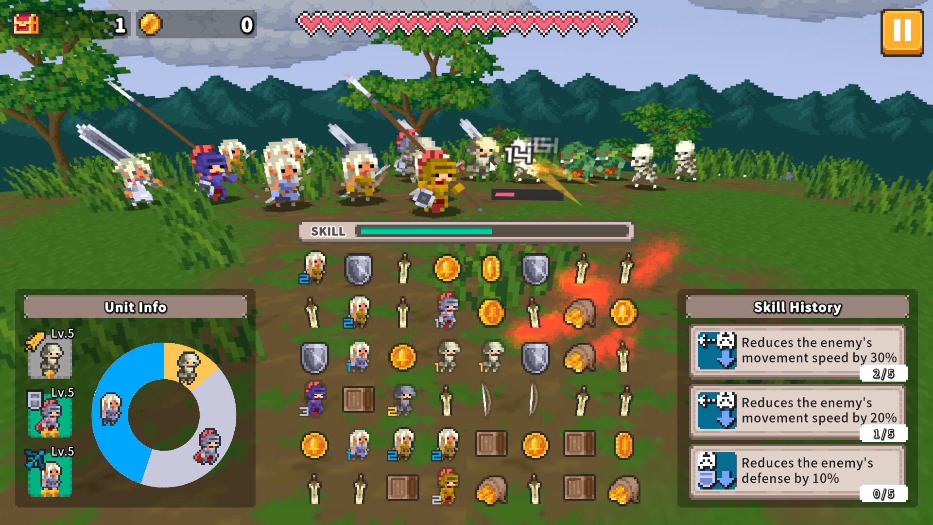 As the strategist of the hero-led army, you will command your troops to fend off attacking monsters and bring peace to the kingdom!