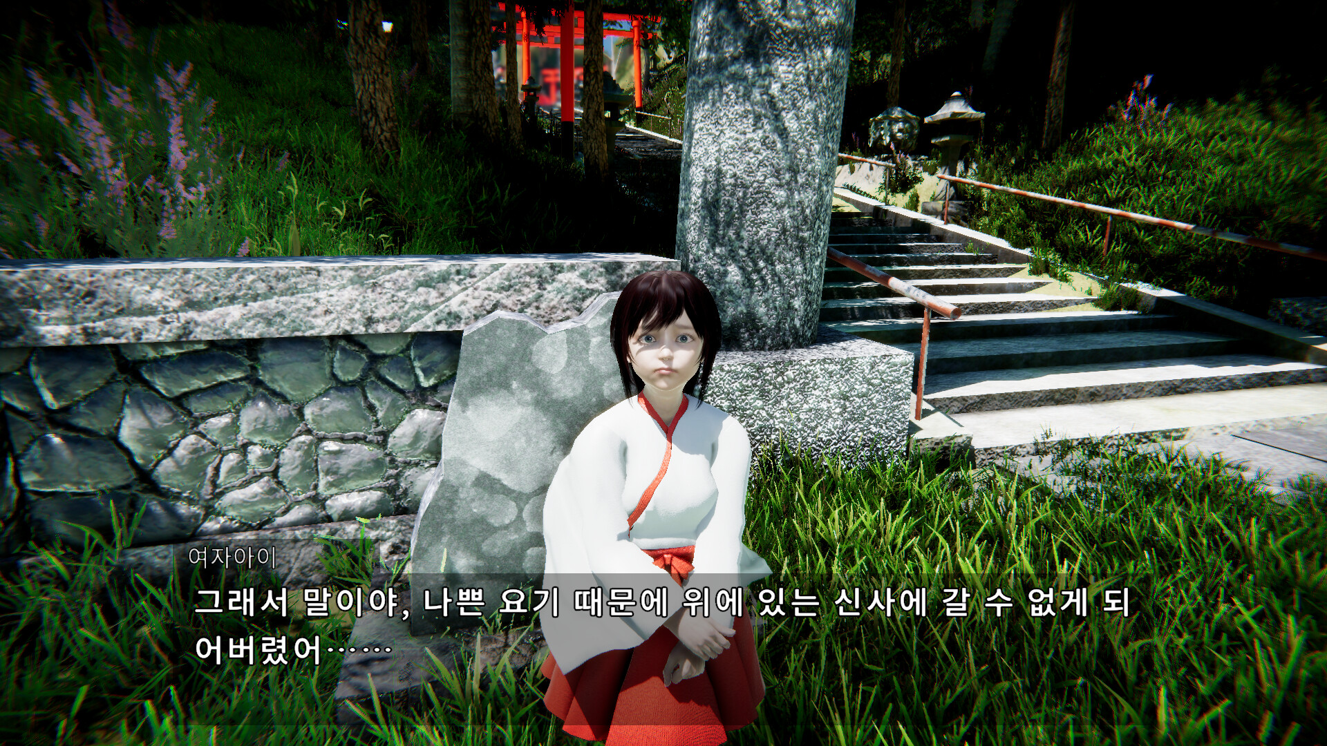 Yaei Shrine is a Japanese-style horror adventure where the player guides a shrine maiden-clad girl toward a mysterious mountain shrine plagued by unsettling disturbances.