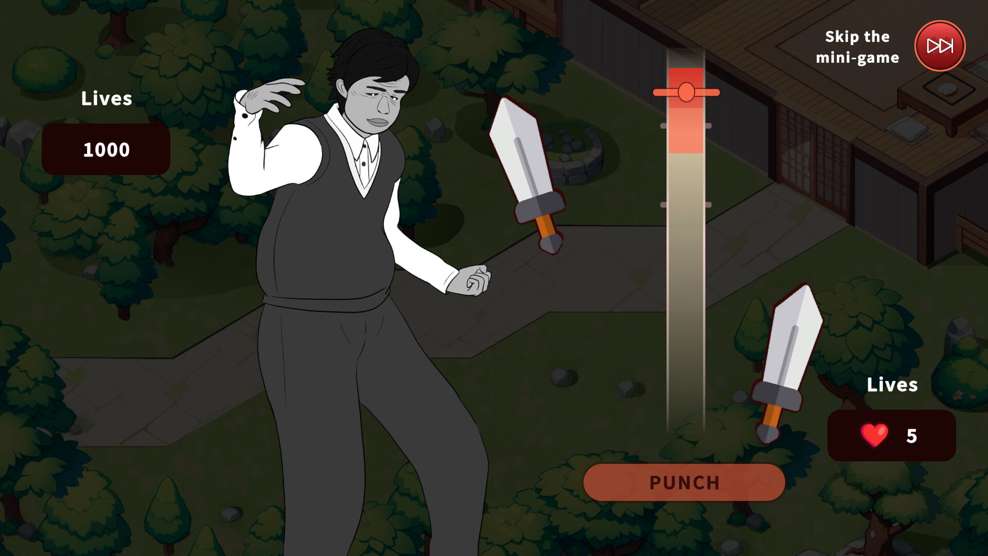 나무를 베고, 돌을 캐며, 때때로 말썽을 부리는 손님들을 상대하는 간단하지만 즐거운 미니게임을 즐길 수 있습니다.