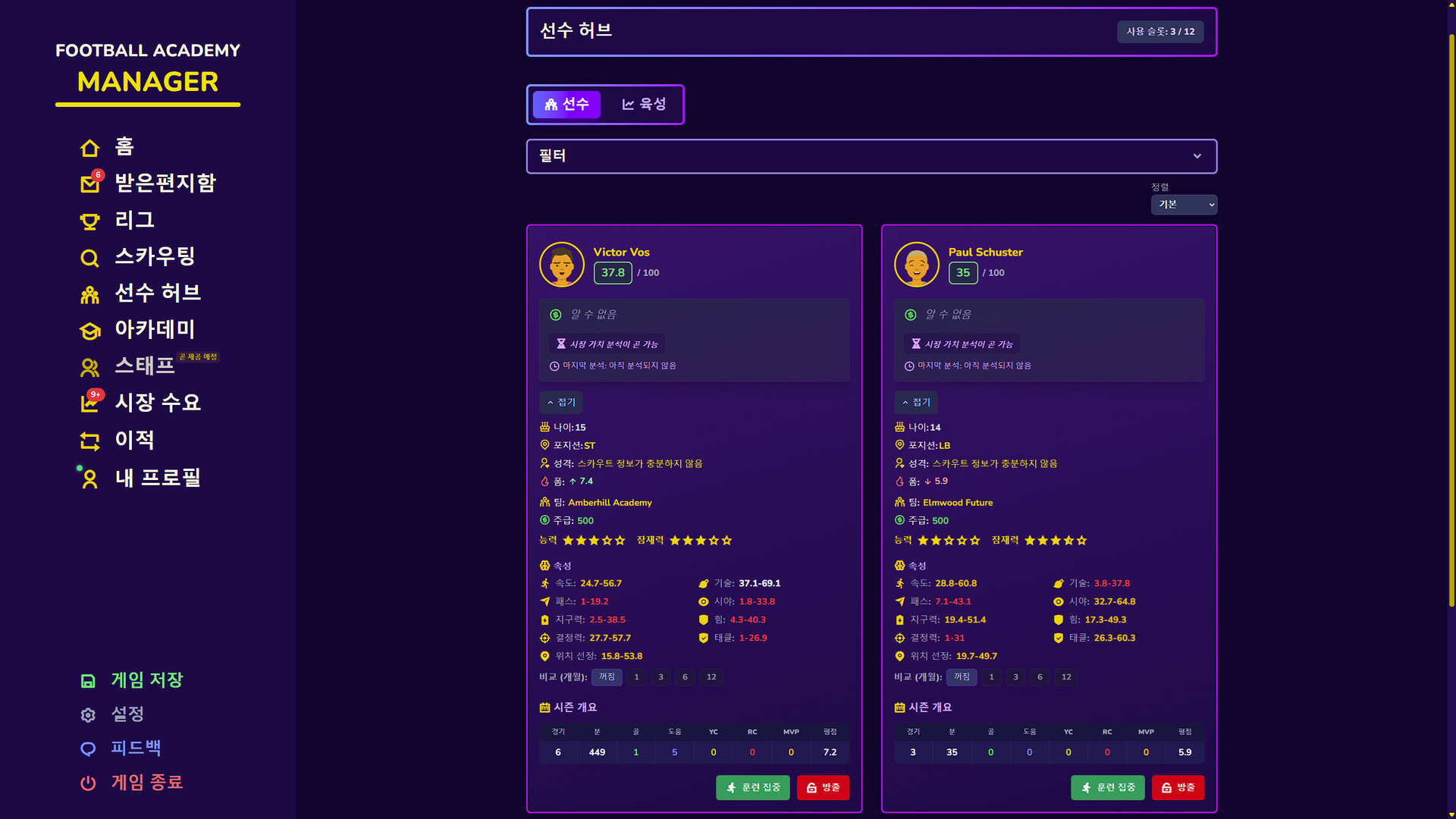 나만의 축구 아카데미를 운영해봐. 유망주를 스카우트해 발굴하고 잠재력을 평가하고 훈련으로 성장시킨 뒤, 구단과 이적 협상을 해서 명성과 영향력을 키워.