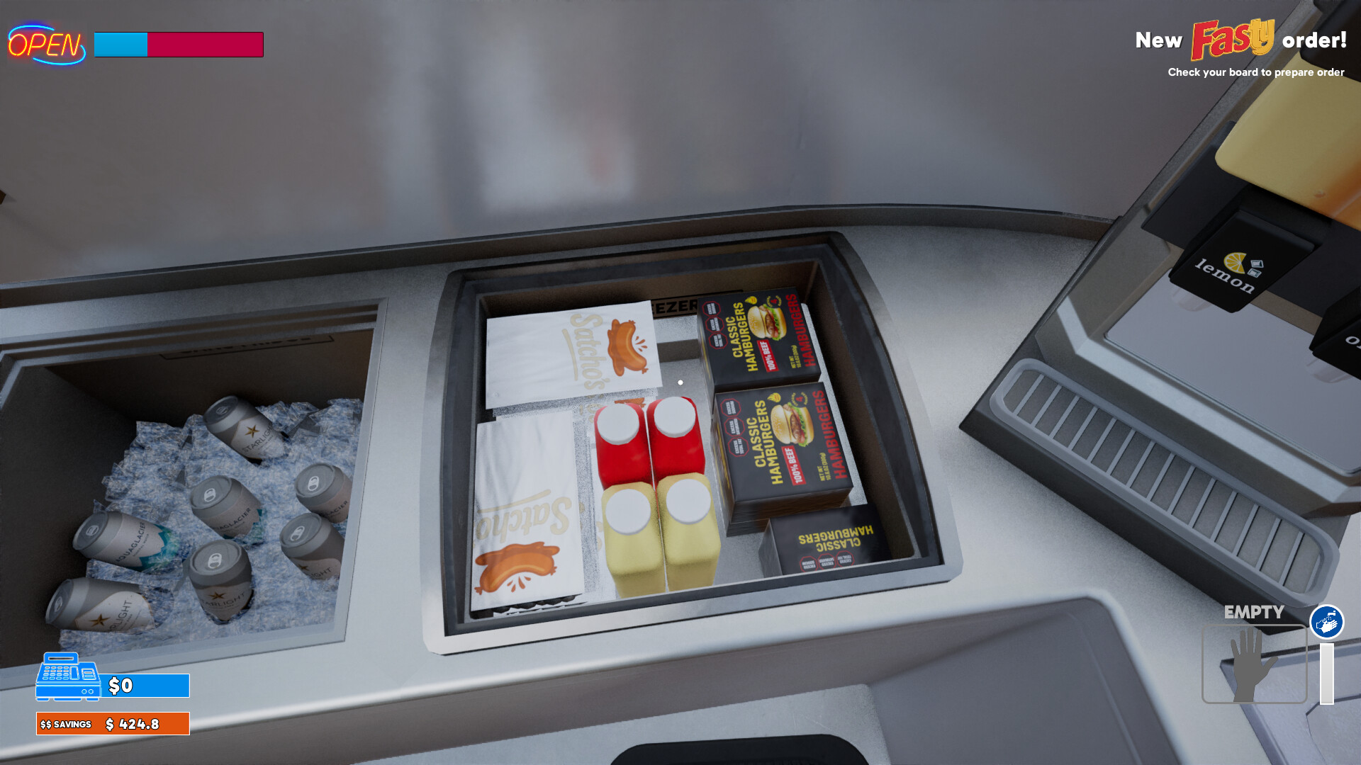직업은 없지만, 꿈은 살아 있다. 모아둔 돈으로 핫도그 카트를 사서 미국의 해변으로 향하자. 패스트푸드를 팔고, 사업을 성장시키고, 별을 향해 나아가라! 고객들이 열광할 만큼 다양한 토핑의 핫도그는 물론, 버거, 감자튀김, 커피, 아이스크림, 탄산음료까지 판매하자. 목표는 효율적인 최고! 시간과의 경쟁 속에서 지금 당장 음식을 원하는 까다로운 손님들을 만족시키고, 너의 카트를 최고의 패스트푸드 가게로 탈바꿈시켜라. 태양 아래에서 빛날 준비가 되었나?