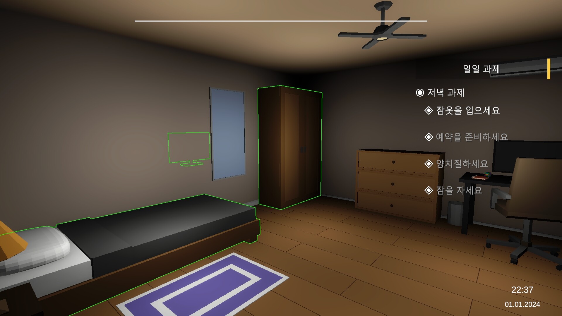 디테일한 일상생활 시뮬레이션: 하루를 시작하고, 양치질을 하고, 옷장에서 근무복으로 갈아입은 후 클리닉으로 향하세요. 이 모든 작은 임무는 바쁜 하루를 준비하는 과정의 일부이며, 이 전문적인 세계의 분위기에 몰입하게 만듭니다.