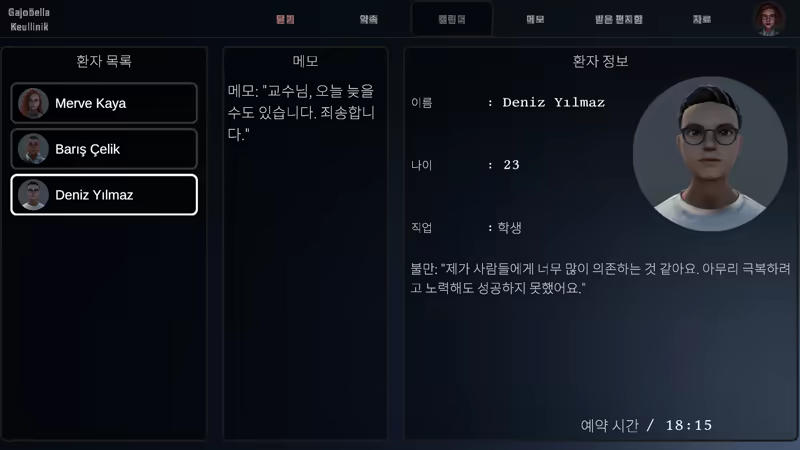 시간과의 싸움에서 마음을 치유할 수 있을까요? **'Psychologist Life'**는 심리학자의 삶을 경험하는 전략 시뮬레이션 게임입니다. 신중하게 예약을 계획하고, 지식을 활용해 환자를 치료하며 당신의 시간 관리 능력을 증명하세요.