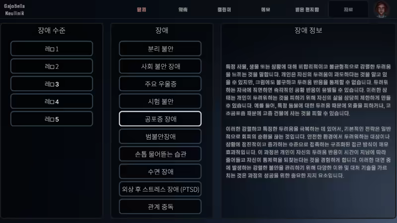 전문화 및 커리어 성장: 10개의 기본적인 질병을 치료할 수 있는 능력으로 커리어를 시작하세요. 성공적으로 완료한 모든 세션에서 경험치(XP)를 획득하세요. 이 포인트를 모아 총 25가지의 다양한 질병에 대한 치료법을 잠금 해제하고 전문 분야를 확장하세요. 가장 어렵고 희귀한 사례에서 가장 신뢰받는 심리학자가 되는 것은 당신의 손에 달려있습니다.