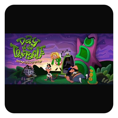 Originally released by LucasArts in 1993 as a sequel to Ron Gilbert’s ground breaking Maniac Mansion, Day of the Tentacle is a mind-bending, time travel, cartoon puzzle adventure game in which three unlikely friends work together to prevent an evil mutated purple tentacle from taking over the world!