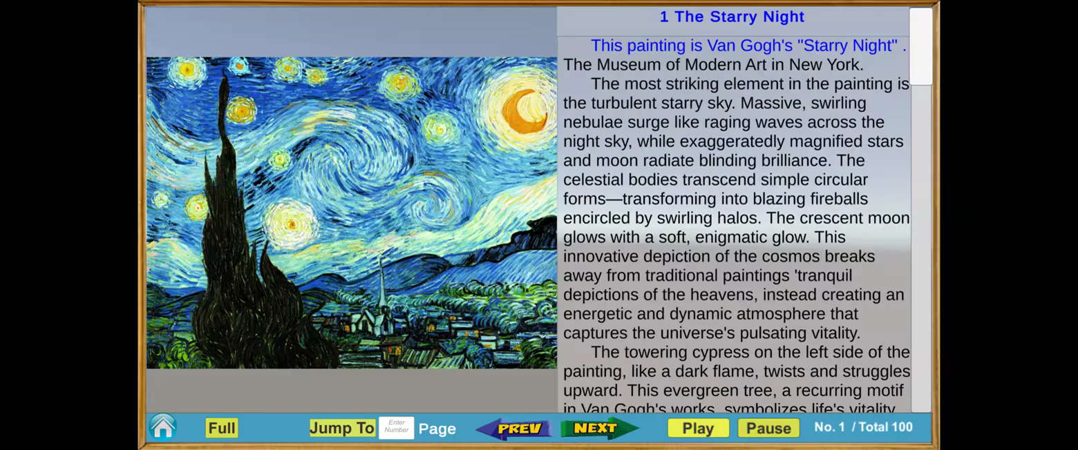 This is a 3D interactive game introducing all the paintings of the famous Dutch post-impressionist painter Vincent van Gogh. Van Gogh's representative works include "The Starry Night", the self-portrait series, and the sunflower series, etc. He painted a total of 2,051 paintingsใ