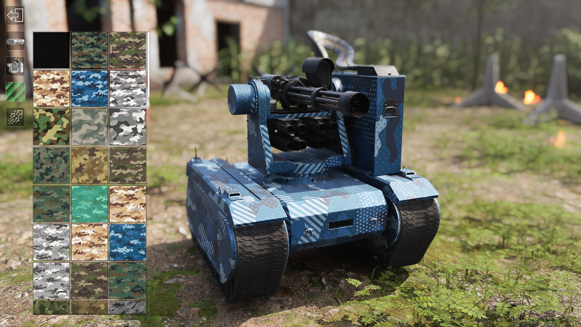 Enter the arena with mini tank drones (UGVs) and unleash chaos on a fully destructible battlefield! Choose from a variety of tank drone types, camouflages and assault turrets - from miniguns to heavy machine guns and rocket launchers. Are you ready to throw yourself into the battle?