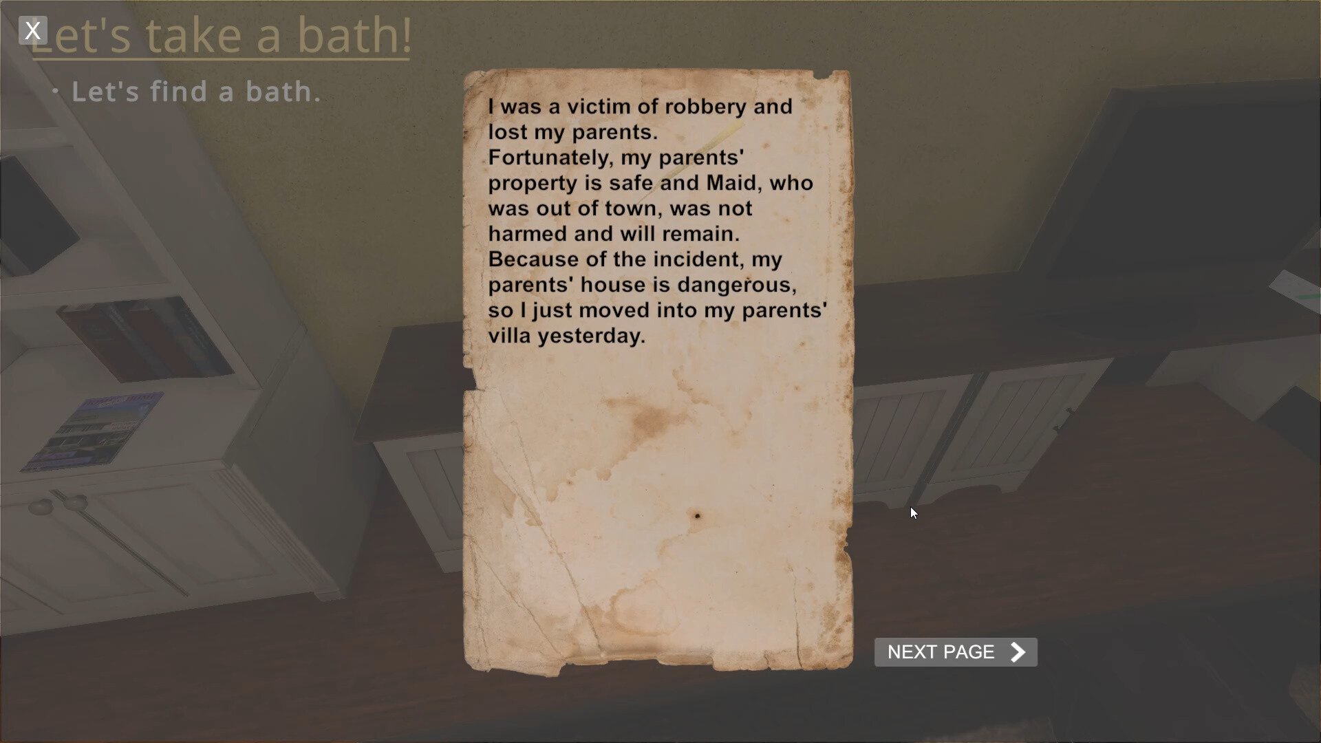 수수께끼와 퍼즐을 풀고 열쇠와 퓨즈, 금고, 자물쇠를 풀 수 있는 힌트를 얻을 수 있습니다. 힌트가 적힌 메모가 탐험에 도움이 됩니다. 메모를 따라가다 보면 메이드의 진실에 도달할 수 있을지도 모릅니다. 본 게임은 마우스와 키보드만 지원하며, 1인칭 시점으로 WASD 키로 이동합니다.