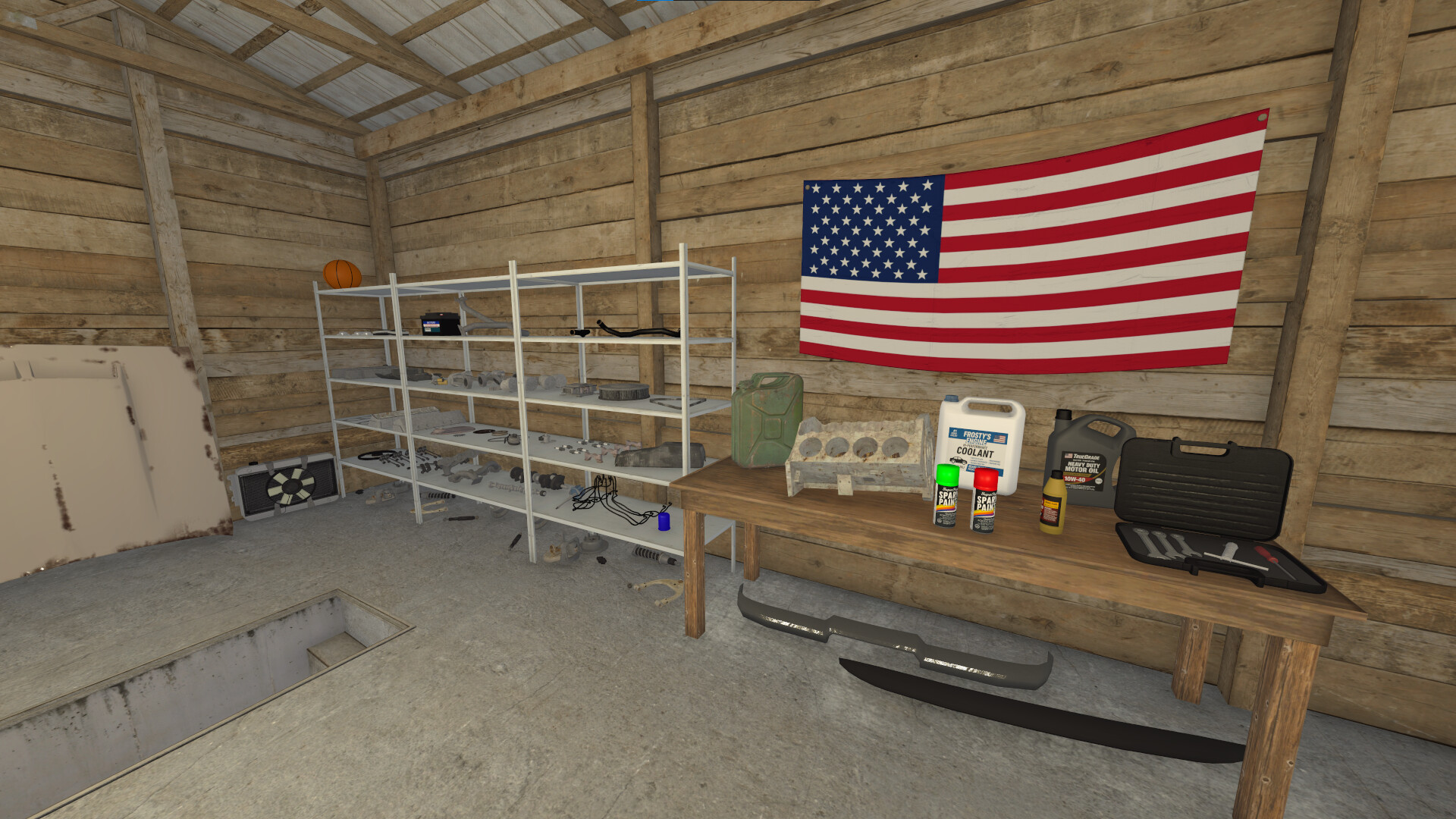 Fix up your crappy car and build the engine yourself. Make money by selling wood, potatoes, mining ores, or racing. Explore the map, manage survival, Build your story set in America, 2002.