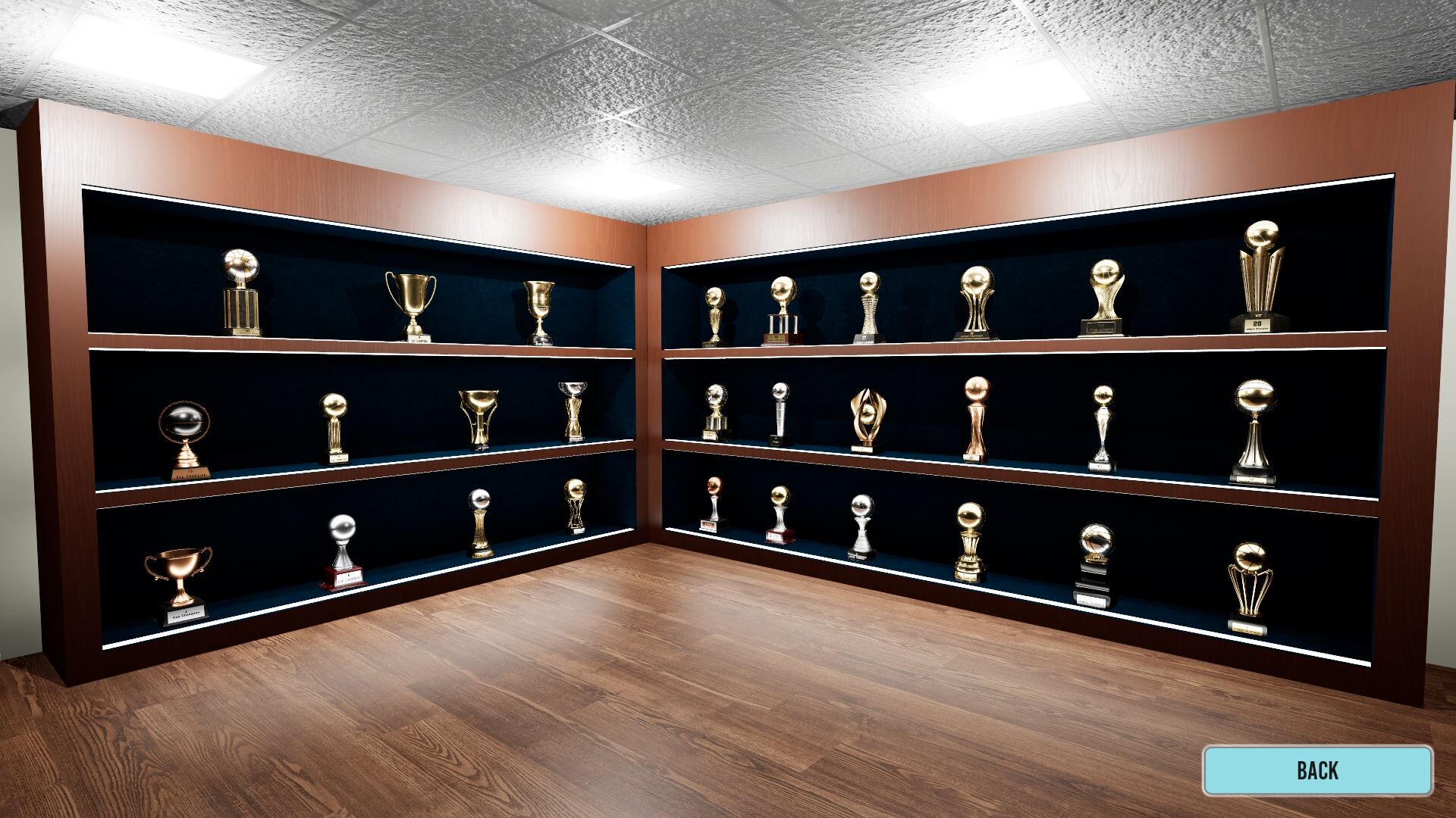 Compete in customizable basketball league and cup tournaments with up to 20 teams. League tournaments end with a final playoff, while cup tournaments are decided by direct elimination after the qualifying rounds. Each tournament has a unique trophy based on the number of participants, which you can earn by winning. Visit your trophy room and celebrate your achievements.