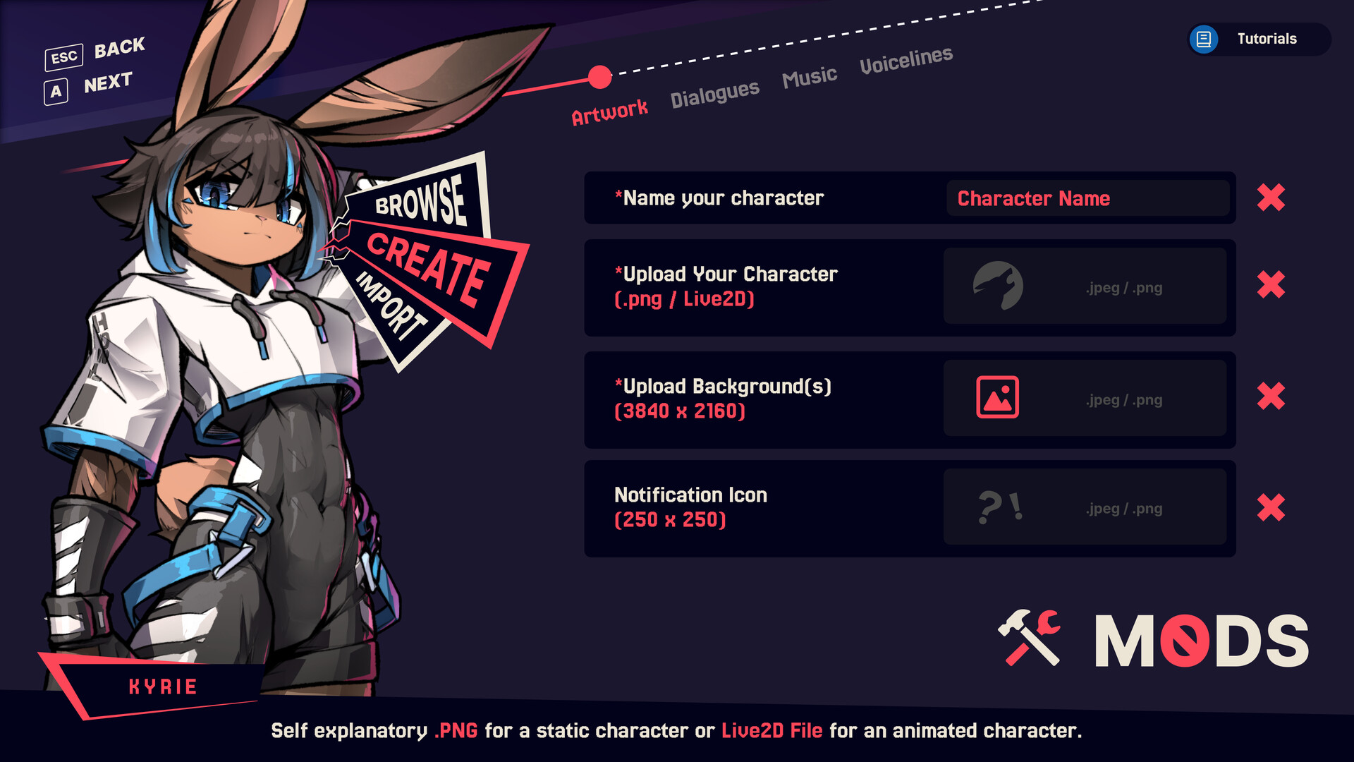 Upload a .csv of custom voicelines and pair them with your own audio recordings to give your character a real voice in game. View and share mods on our community Discord!