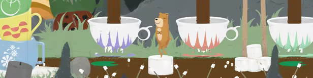 Bounce across cocoa swamps on endless marshmallows, ride in a submarine, and dance with a cow. Help Merry Bear find her mascot neighbors (and maybe some chic furniture) in a delightful, hand-drawn world influenced by mid-century illustration and advertising.