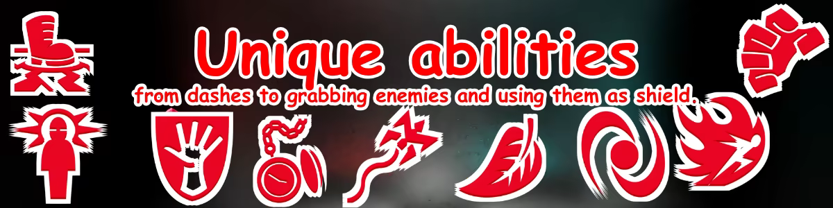 Unique abilities - from dashes to grabbing enemies and using them as shield.