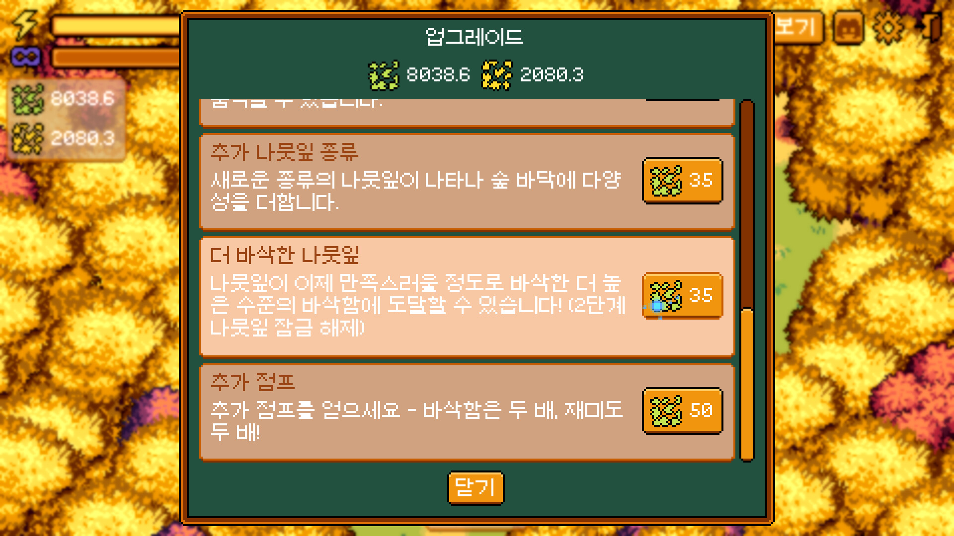 호기심 많은 고양이에서 멈출 수 없는 나뭇잎 밟기 야수로 변신하는, 아늑하고 업그레이드가 가득한 모험입니다. 마법의 요정 가이드와 함께 숲속의 비밀을 밟고, 탐험하고, 발견하세요.