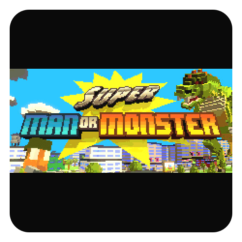 Super Man Or Monster is a monsterfilled, explosive, third person action game with a delightful 8-bit style. You choose if you want to fight with MAN to protect the world, or be a MONSTER and destroy it!