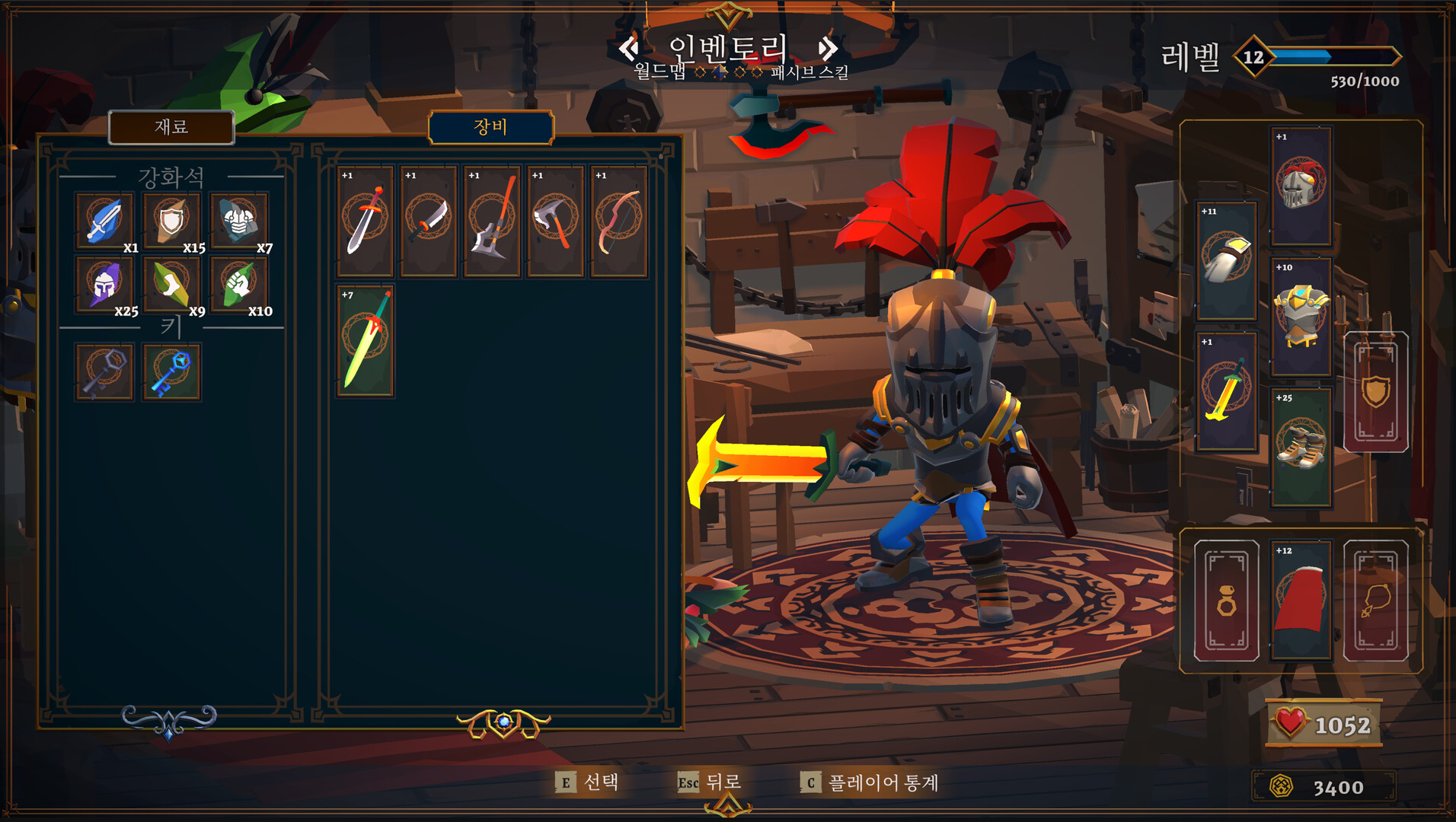 전투를 하면서 캐릭터의 레벨이 오릅니다. 레벨업을 하면 전투에서 당신을 지원하는 영구적인 능력을 얻을 수 있습니다.