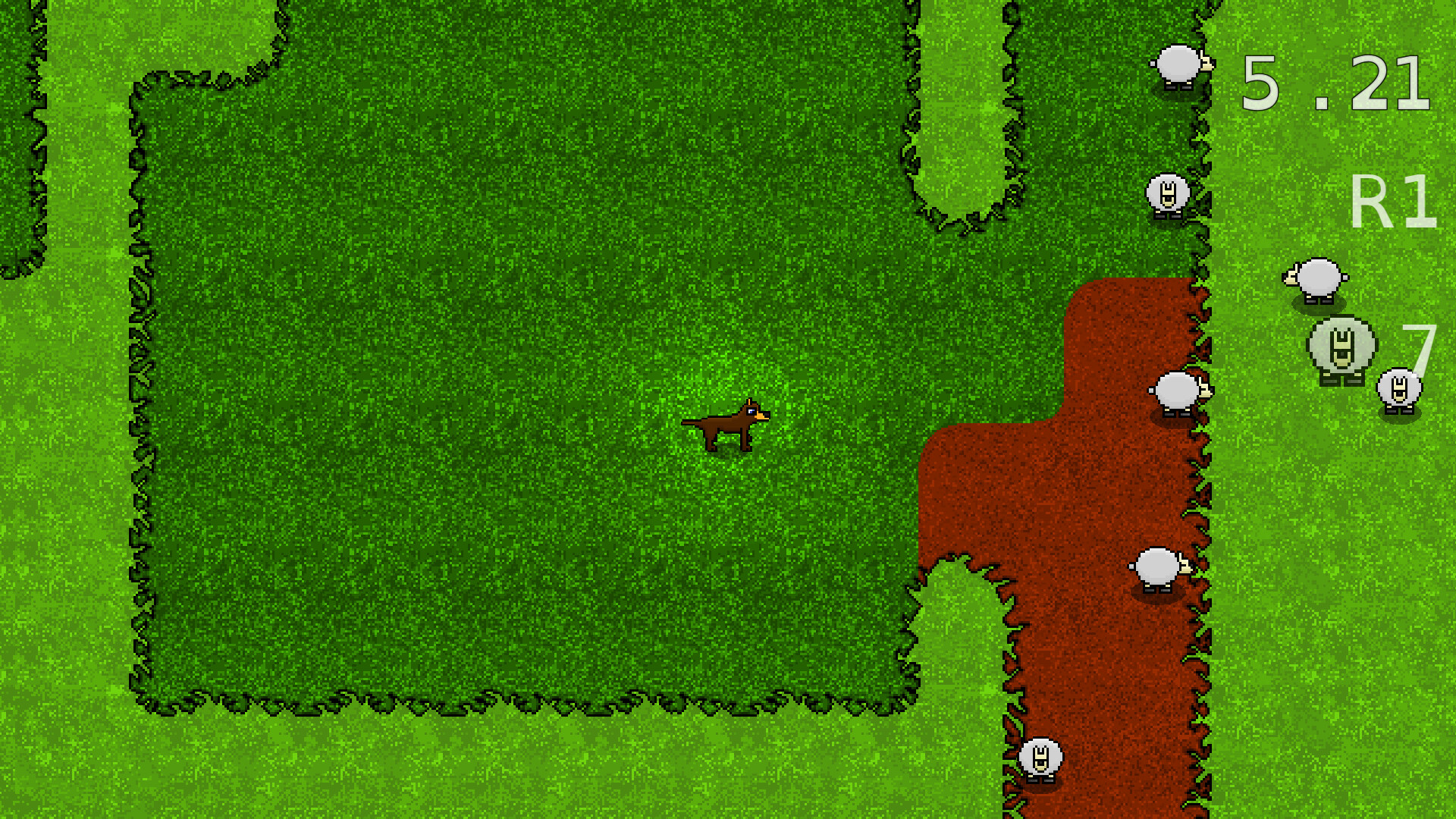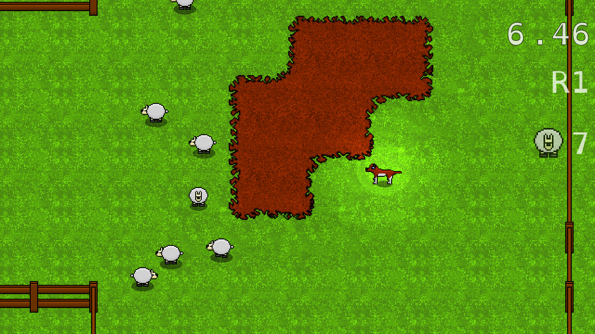 Bush Dog is a game where you herd sheep on different maps, with more sheep added each round until you run out of time. Where you go again to best your high score.