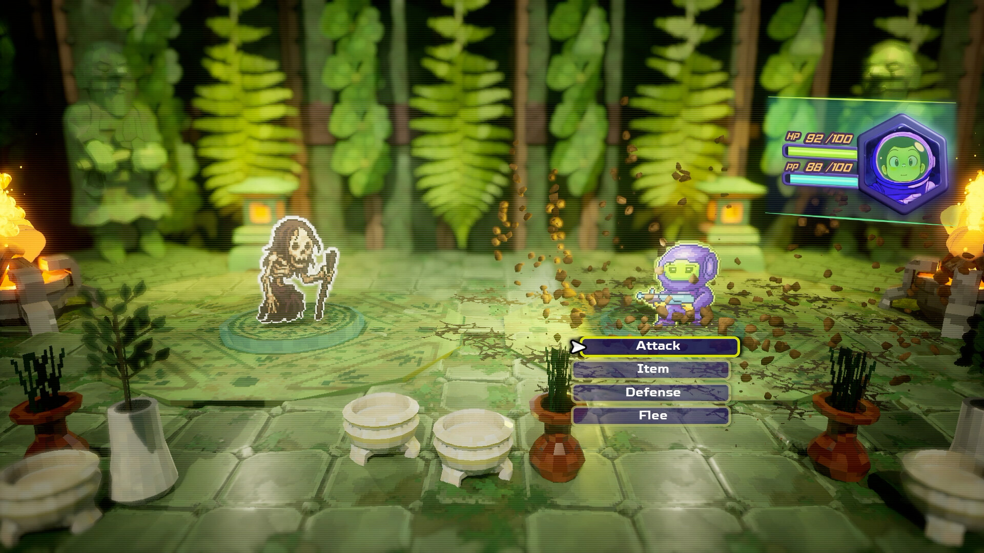 Set in a futuristic Japan overrun by spirits, Spaceman Memories is a true ode to classic JRPGs of the past. The game's world coupled with its heartwarming narrative, offer players a chance to relive the good old days of 2D gaming. As the spaceman Ichiro 94, whose capsule mysteriously landed back home after a space mission, players embark on a poignant journey of self-discovery, encountering strange creatures, and battling formidable foes, all while uncovering the secrets of his forgotten past and ancient Japanese mysticism. With each step, players must also solve puzzles and use Ichiro's abilities to fight, all of which are vital in the quest to uncover the truth about his past.