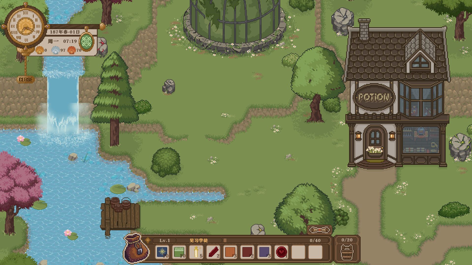 The witch teacher suddenly left, and the house sustained by her magic is about to collapse. Fortunately, she left behind a dilapidated potion shop in the town. Repair the shop, grow crops, raise magical creatures, and harvest and brew all kinds of potions!