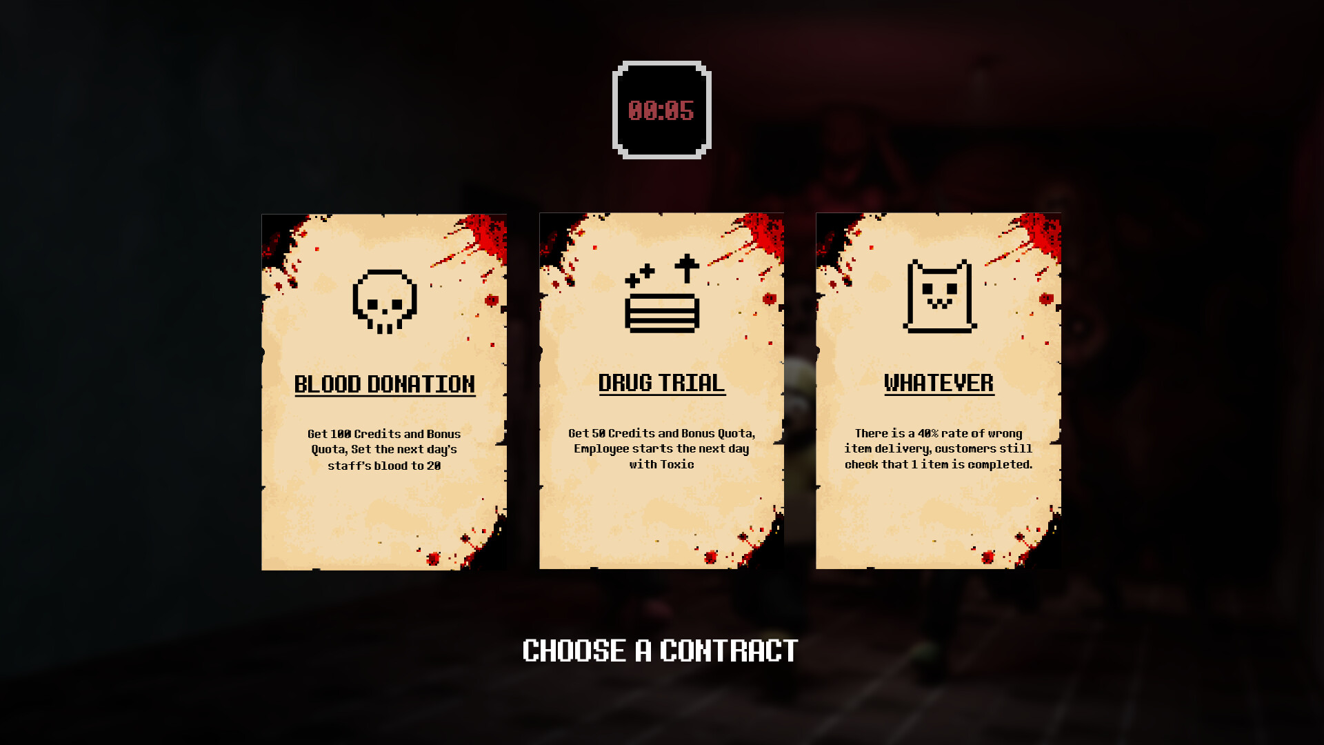 각 밤마다 계약을 선택해 미션 조건을 변경하고,