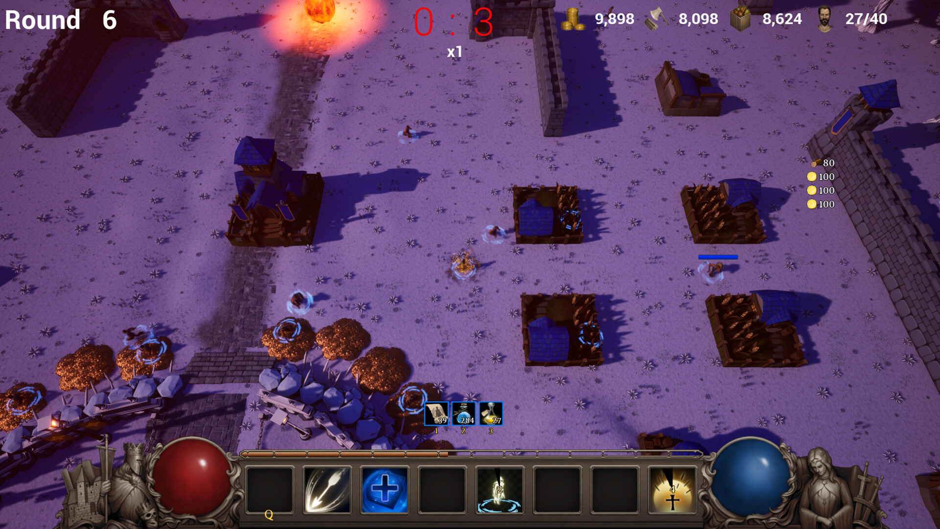 An auto-battler roguelike game. You control a hero, command a powerful army, unleash devastating magic, build formidable defenses, and manage resource gathering to withstand relentless enemy assaults.