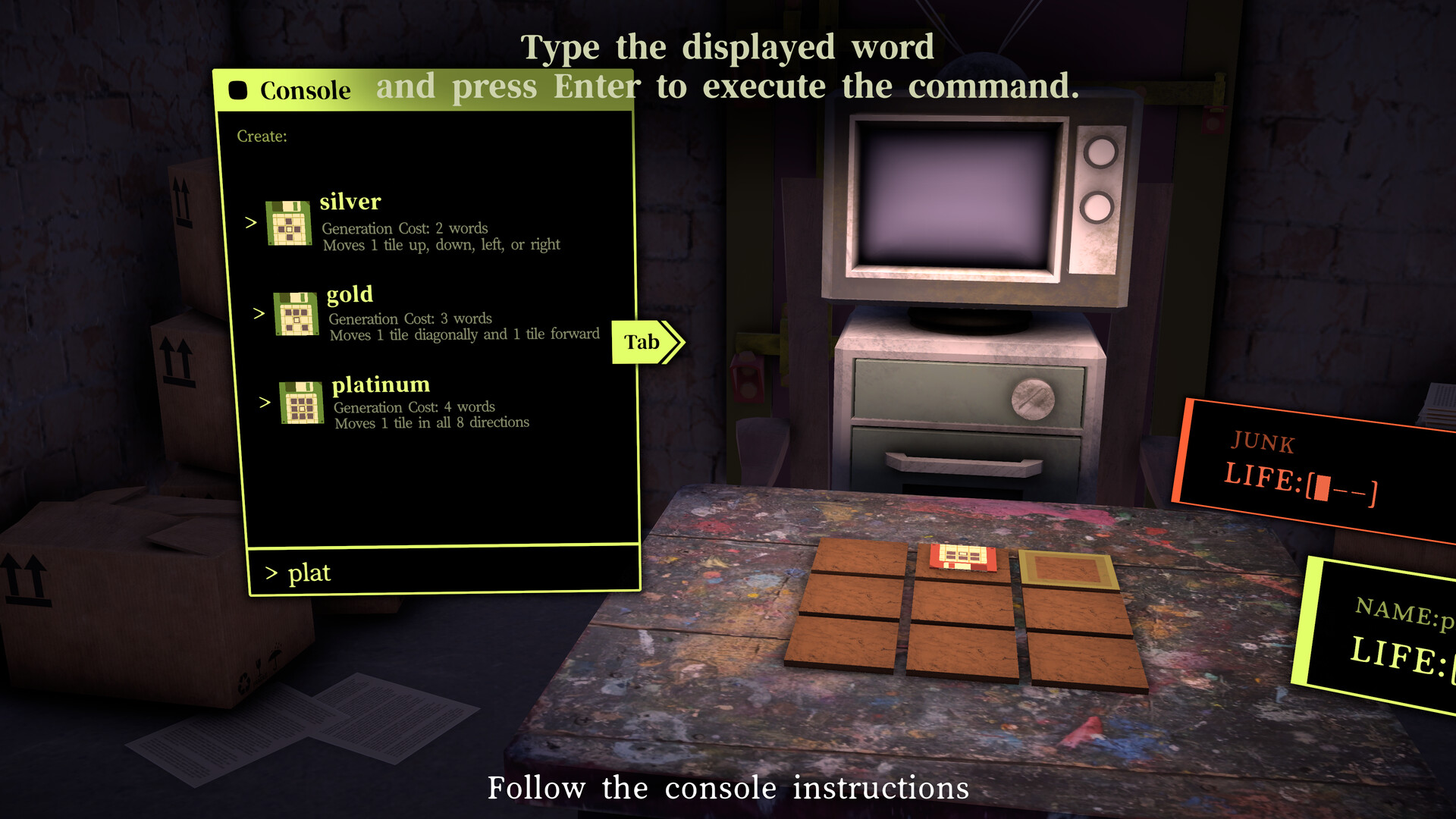 By repeatedly typing short words, players can execute desired actions. Stronger actions require completing more typing tasks.