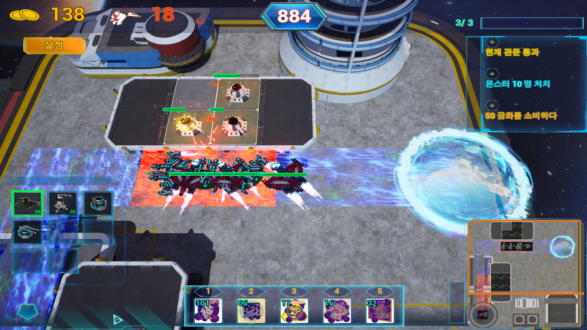 지휘관인 당신은 제한된 공간과 자원 안에서 방어 시설을 건설하고 업그레이드하여 한 파도씩 밀려오는 적을 막아야 합니다. 동적 타워 디펜스 체험: 적은 무작정 돌진하지 않고, 탐지하고 경고하며 방어선을 우회하려 합니다. 플레이어는 배치를 지속적으로 조정해 대응해야 합니다.