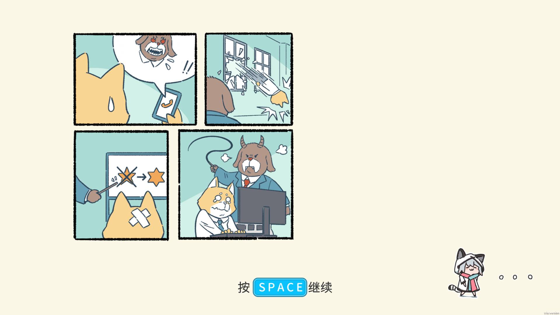A white-collar worker in Animal Town, diligent and dedicated. All of Mr. Dog’s levels are workplace-themed. From the boss’s promises to colleagues’ gossip, his own distractions, and the leader’s blame—the daily life of an office worker is sure to resonate with you. This demo includes 3 short levels.