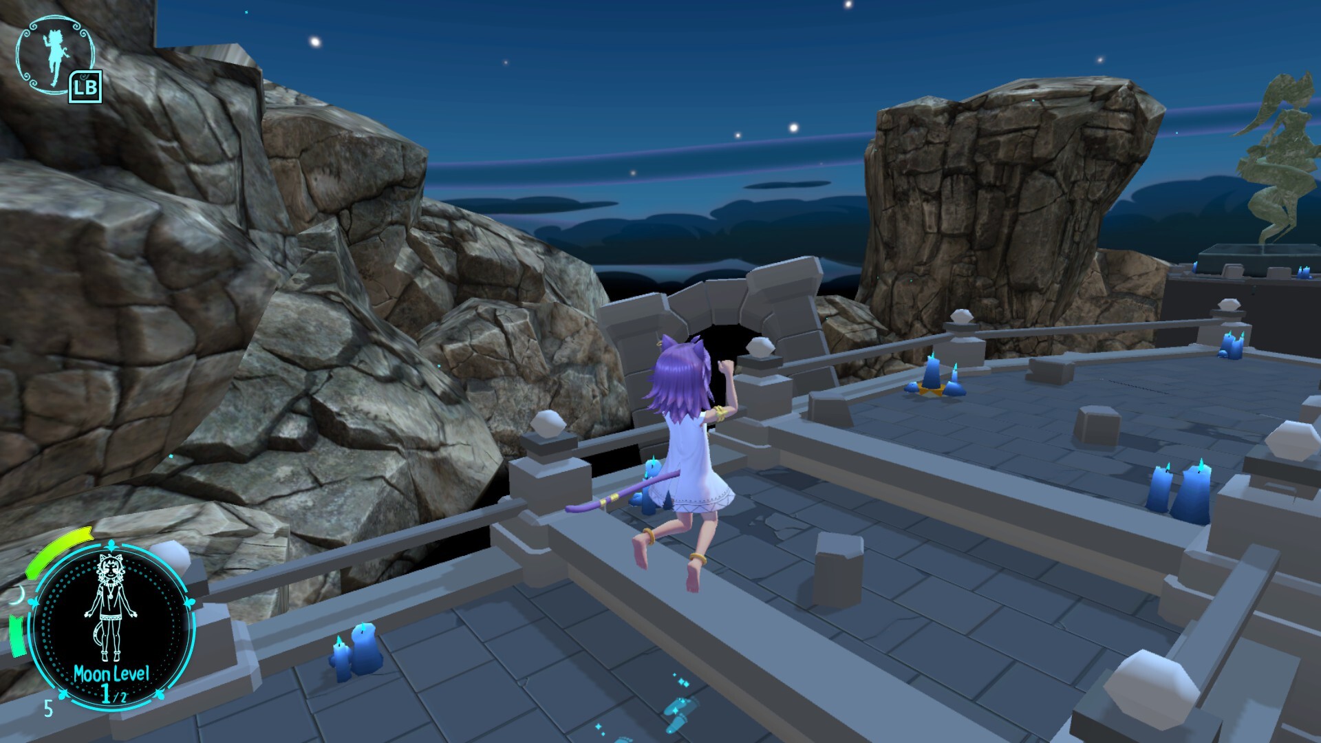 You play as Novalis, a powerful summoned being who helps Neffy by manipulating gigantic mechanisms and unlocking sealed paths with the power of moonlight.