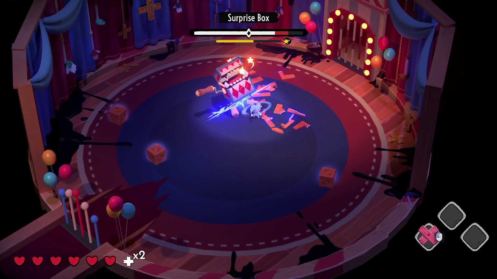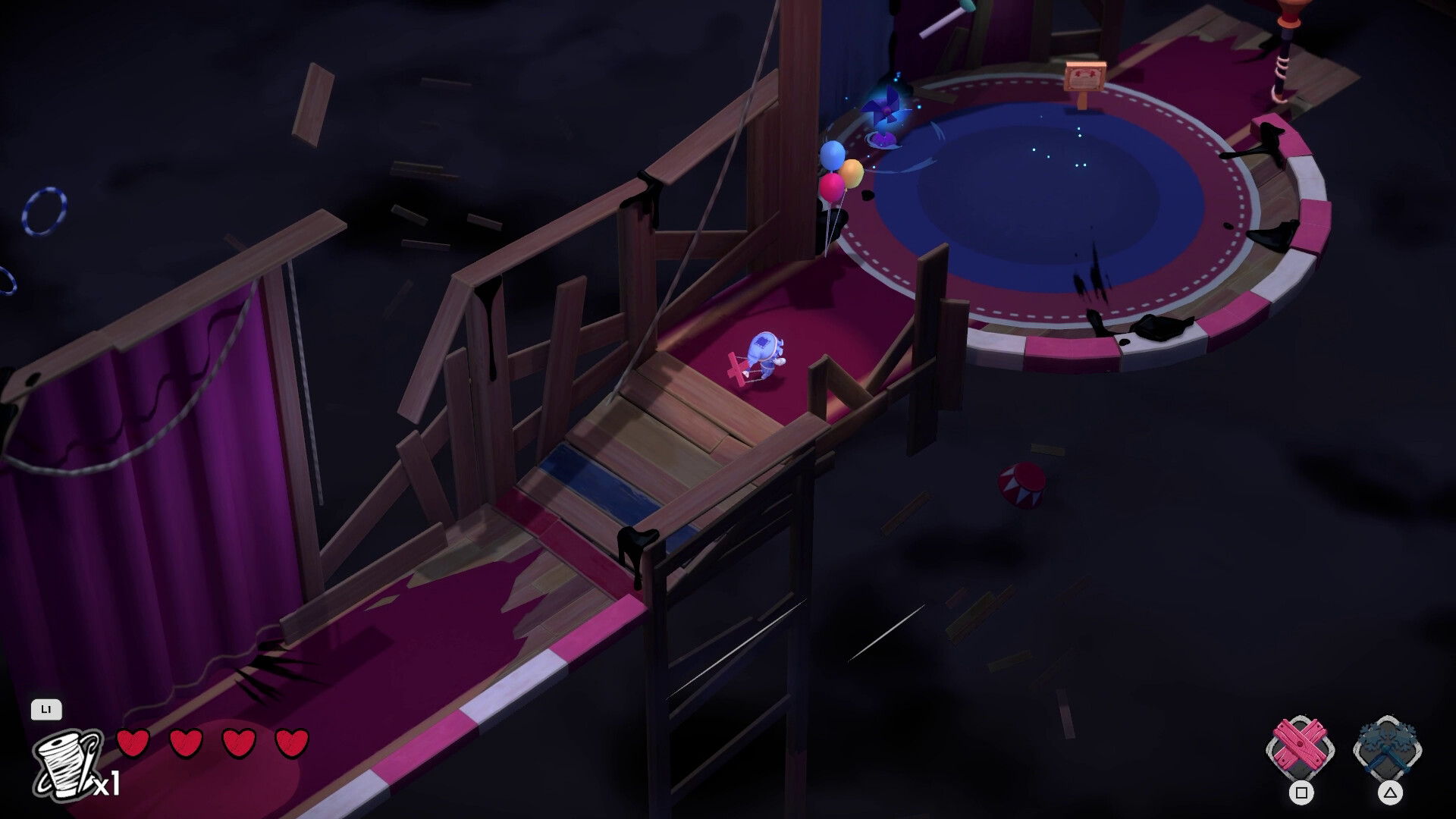 The key feature in Nightmare Circus is the “Puppet String” mechanic. The player can use the puppeteer’s sticks as a weapon, alongside a Control Bar to fend off hostile enemies, as well as to traverse, manoeuvre, and attack with our unique Collision Combat system.