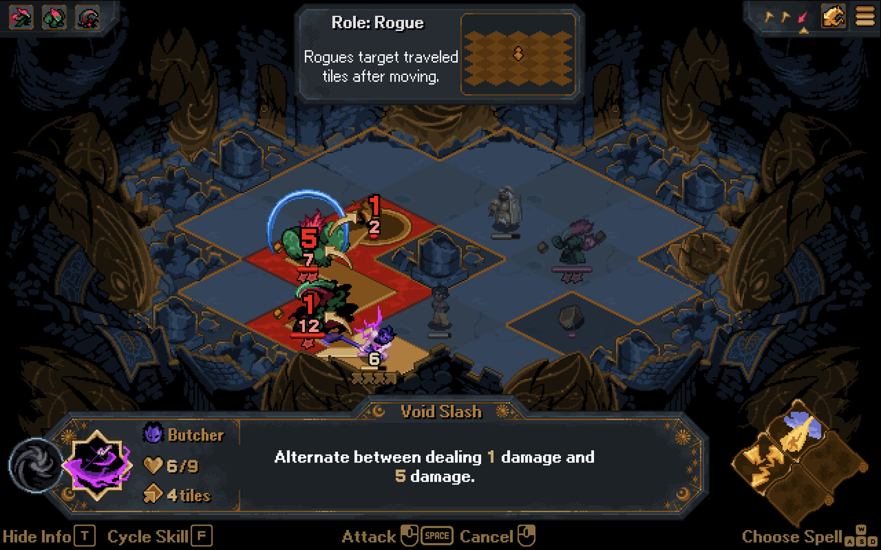 Movement replaces targeting menus, with your champions automatically unleashing a contextual area attack at their destination tile. Movement paths displace other units, arranging the battlefield to avoid enemies or save allies.