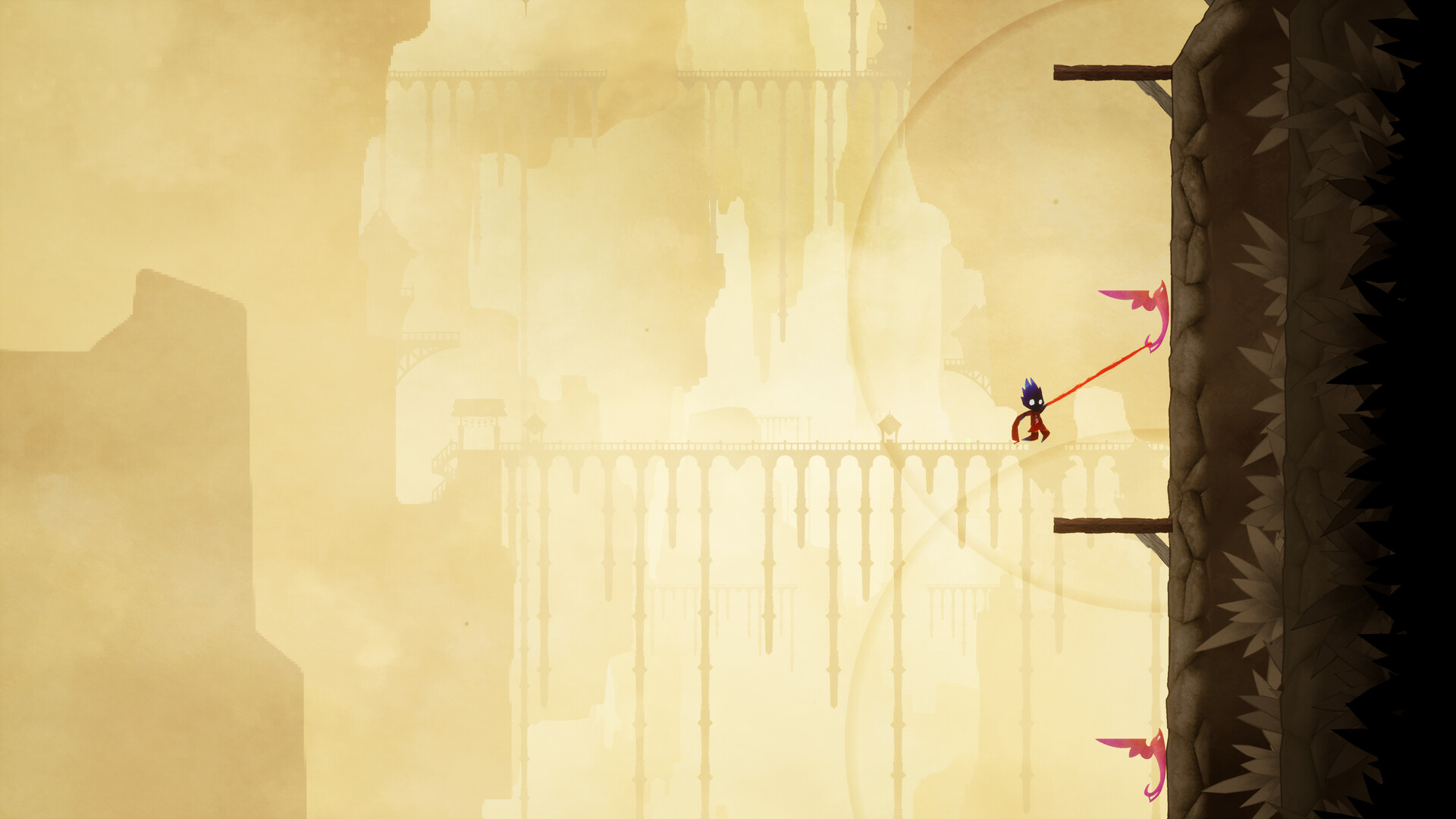 Guide Naginami as they ascend the enigmatic Yora in search of their beloved, Iza. In this 2.5D adventure, utilize the Crimson Thread, to swing, grapple, and pull your way through 2 unique peaks and platforming challenges.