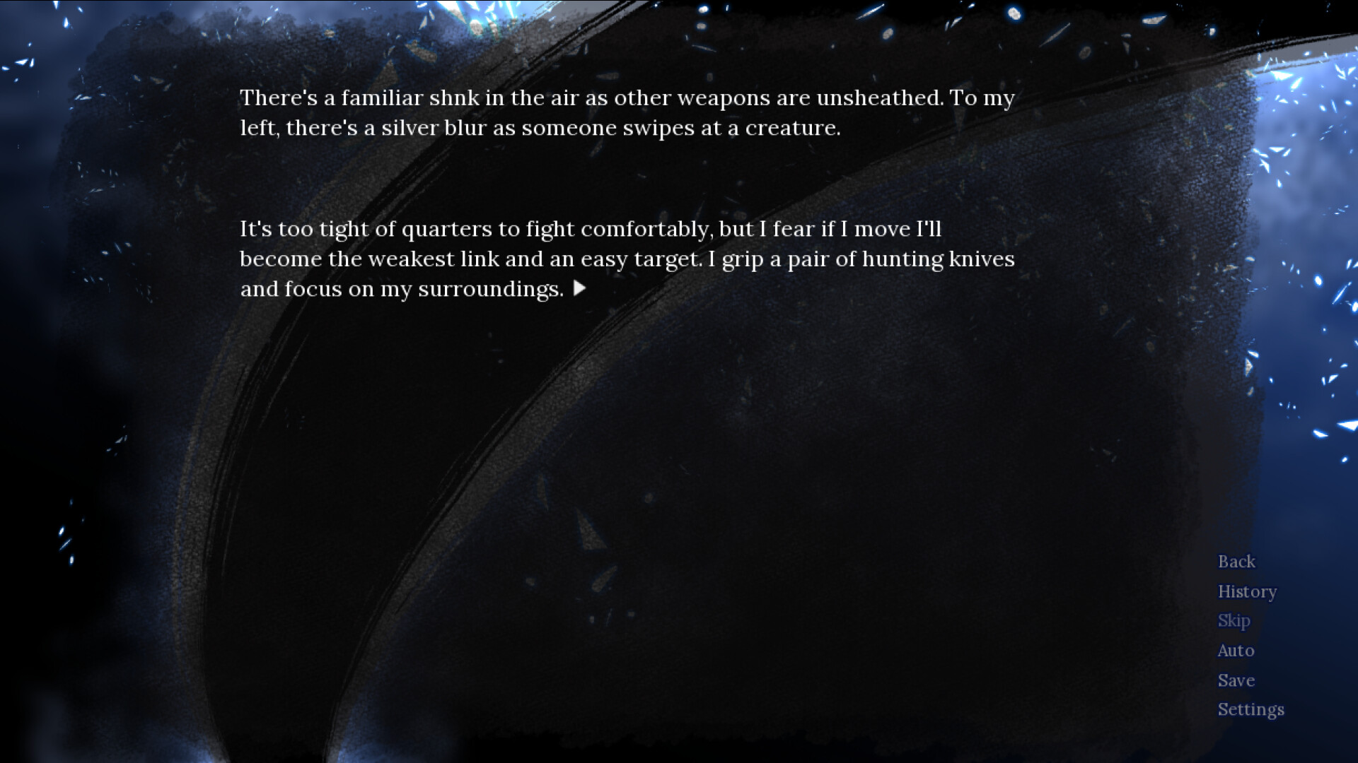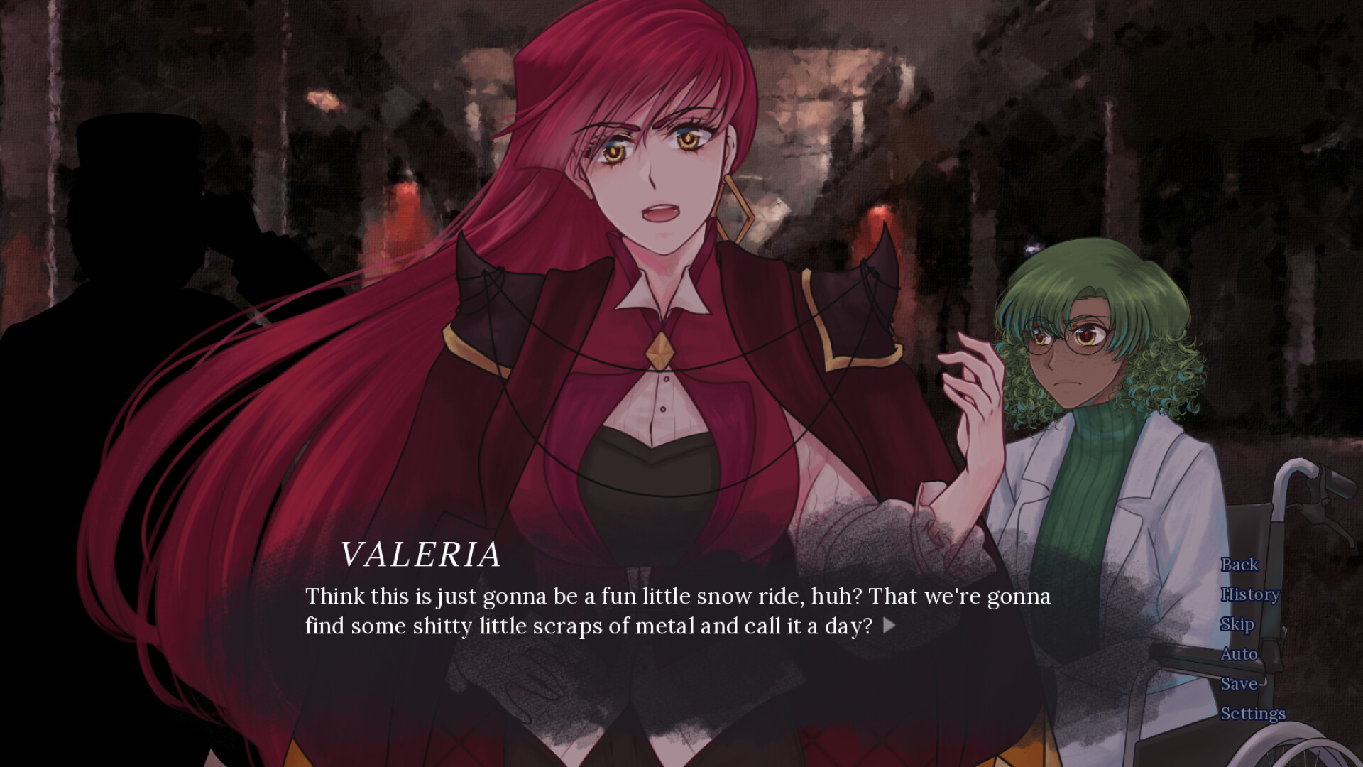 A post-apocalyptic horror fantasy visual novel about a never-ending winter night and humanity persisting.
