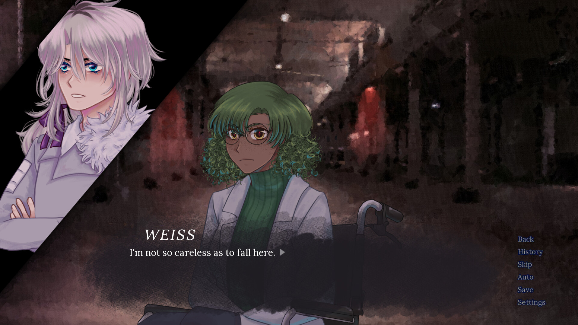Weiss is the Scavenging leader of one of the last bastions of humanity, clinging on to life amidst a forever snowy hellscape teaming with mutated monsters. Everyday life in this wasteland is daunting, but with the sudden disappearance of their partner, Weiss must throw themself face-first into the world they so despise and reckon with what they truly want out of a "future"...