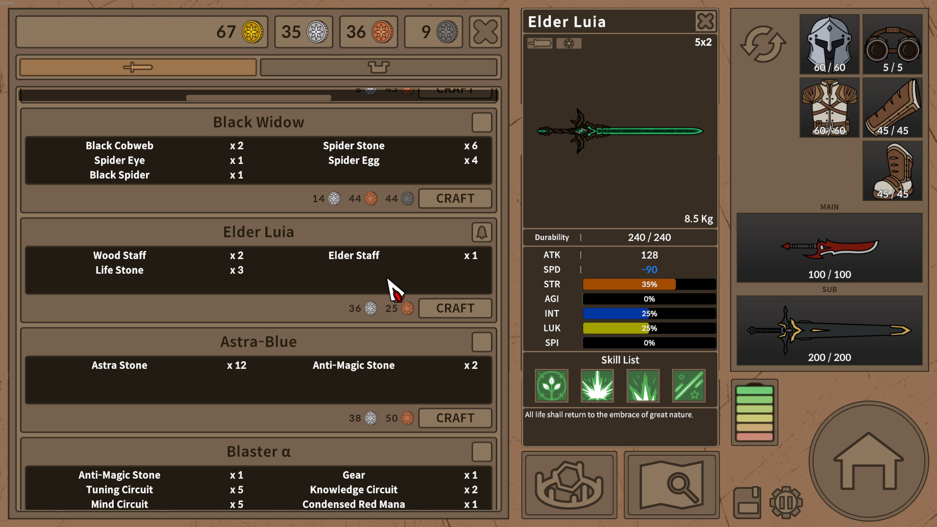 무기마다 사용할 수 있는 스킬과 능력치가 다르며,