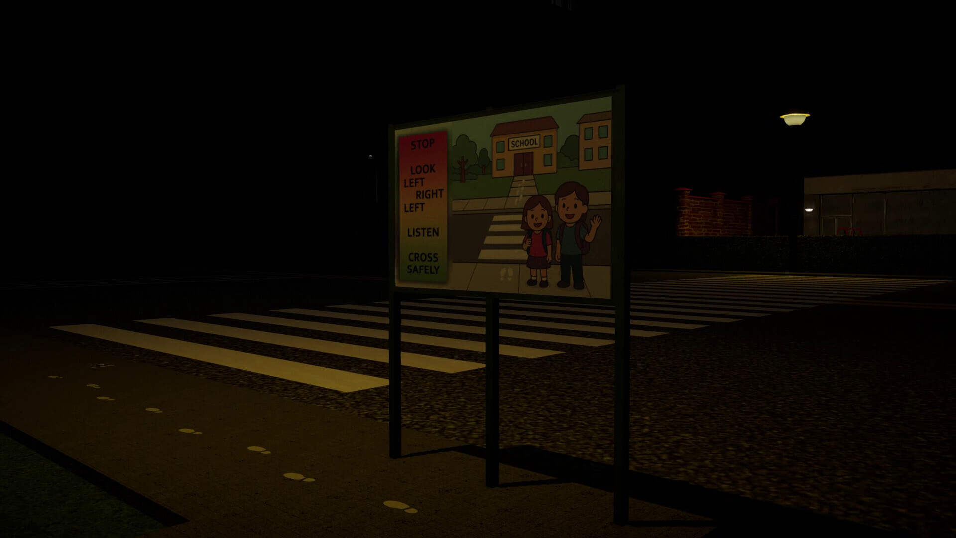 A creepy looping street where each pass has a chance to have an audiovisual anomaly. Players must decide to go forward if they haven't spotted, or go back if they have spotted an anomaly in the current pass.