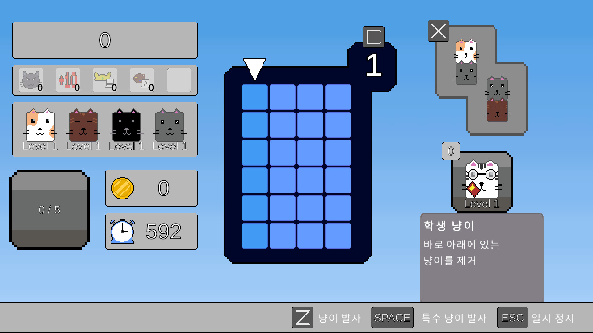 고양이들을 3개 이상 맞춰 레벨을 올리고, 고양이 블럭을 강화.