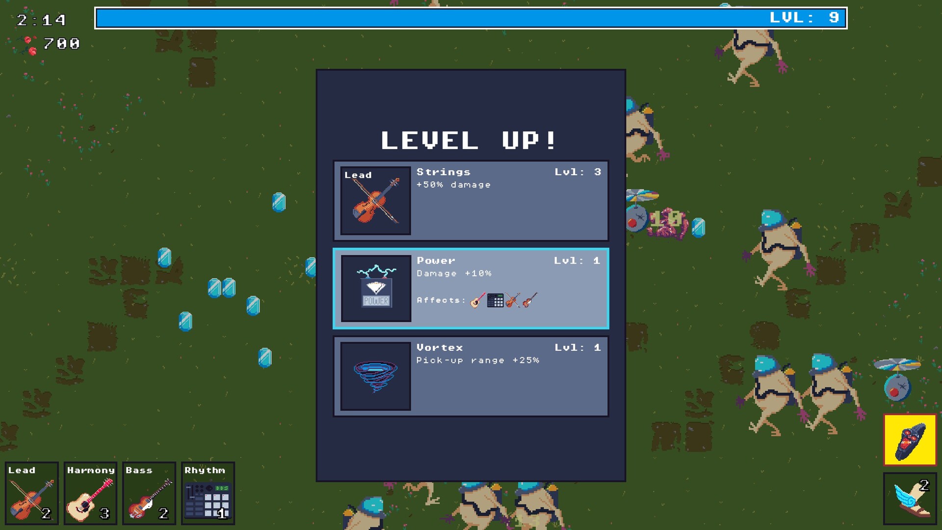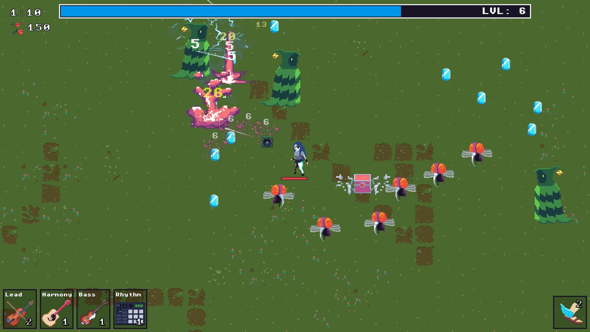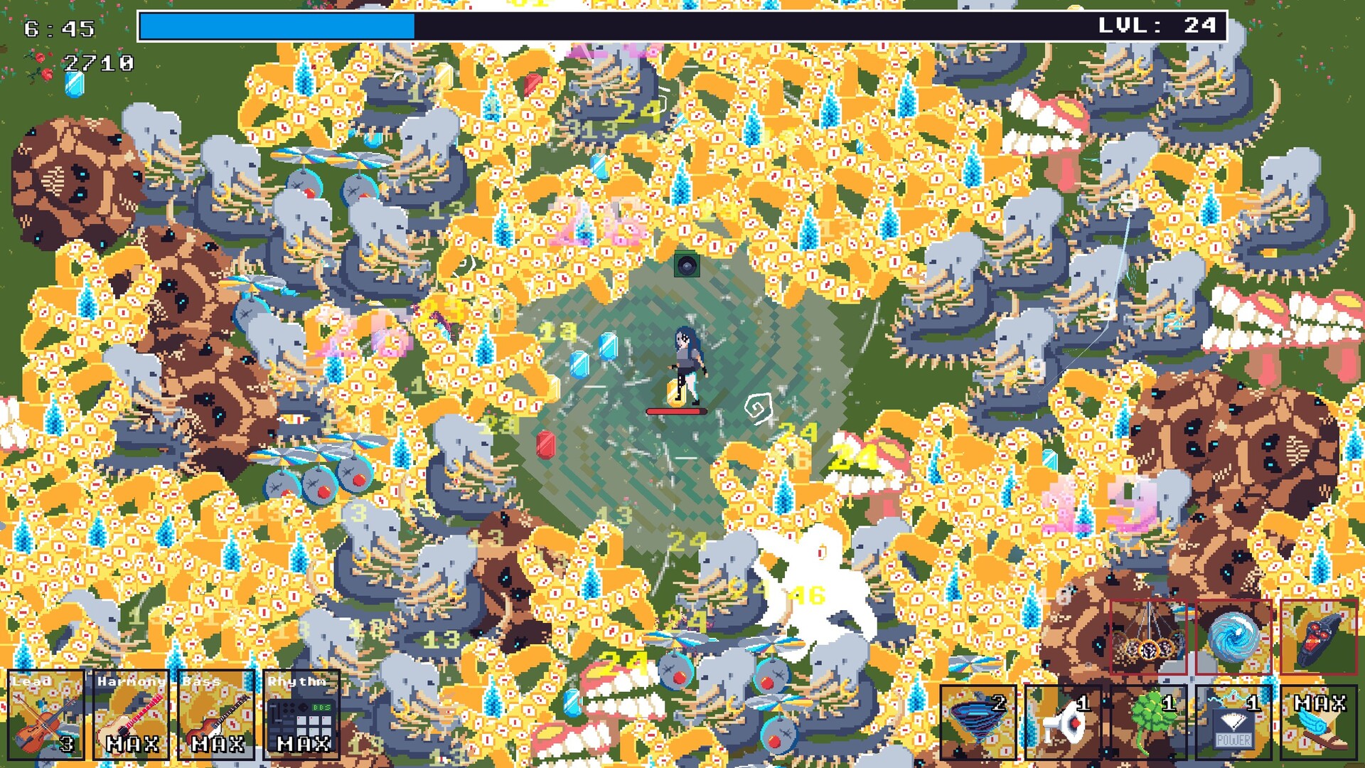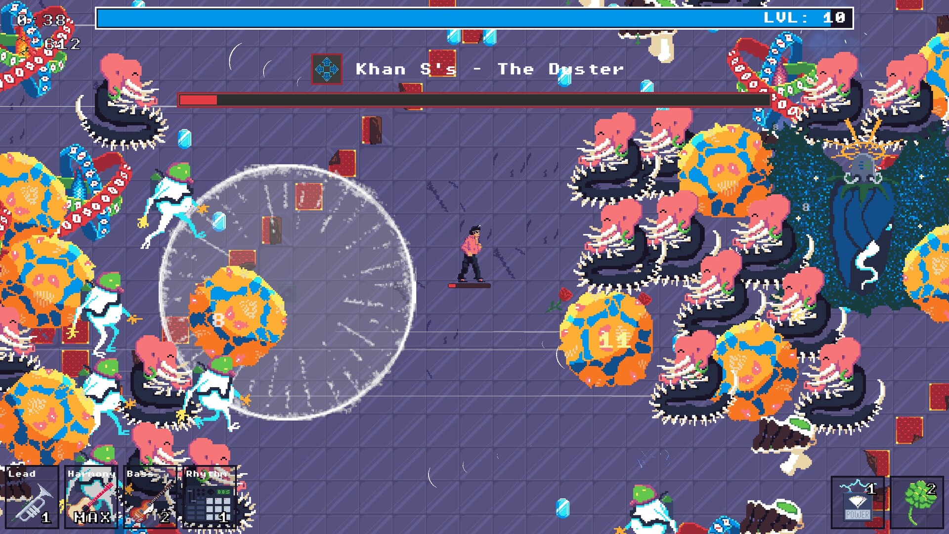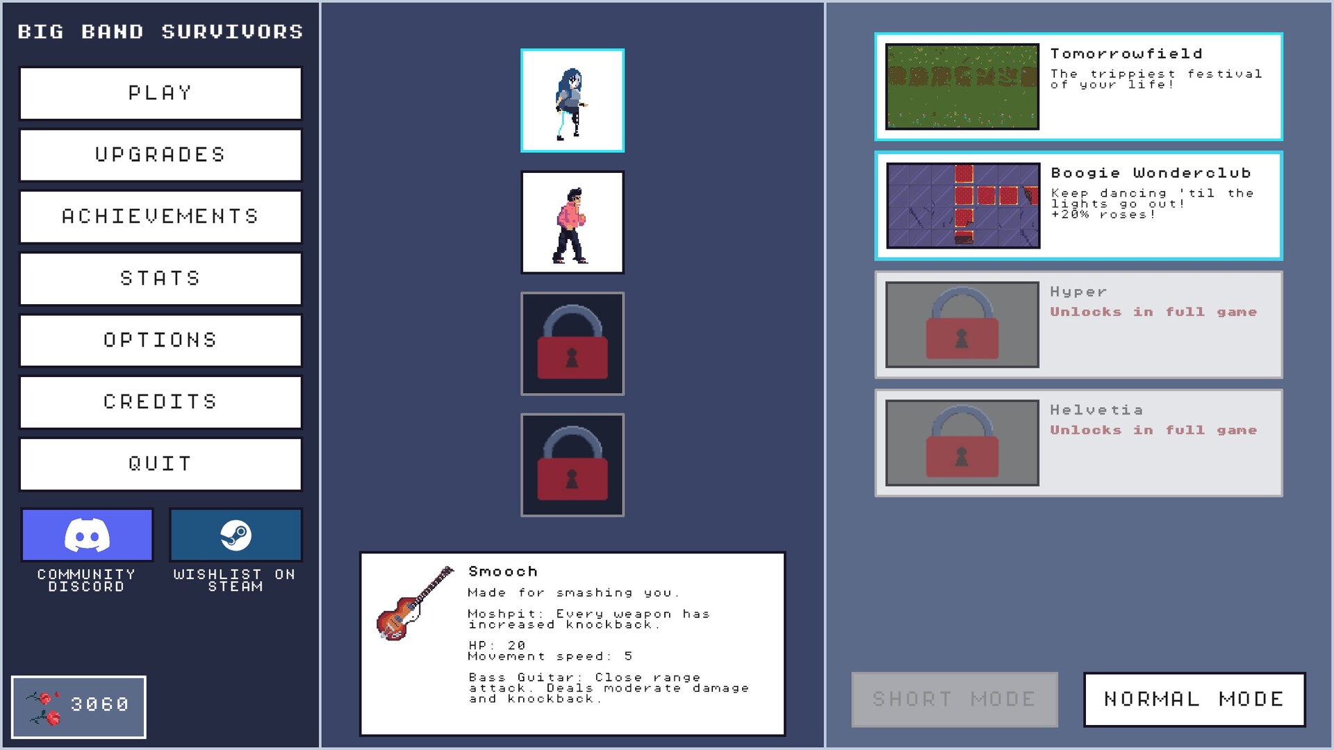 Build your band, unlock powerful relics, and slay hordes in sync with the beat. Big Band Survivors is a rhythm-based roguelite that combines the visceral gameplay of the Survivors-like genre with musically interwoven game mechanics.